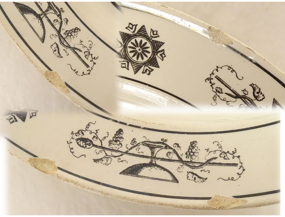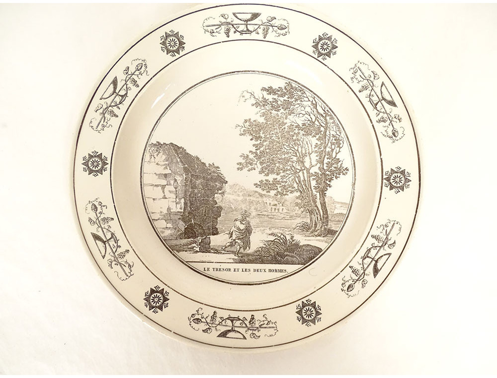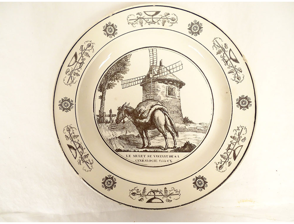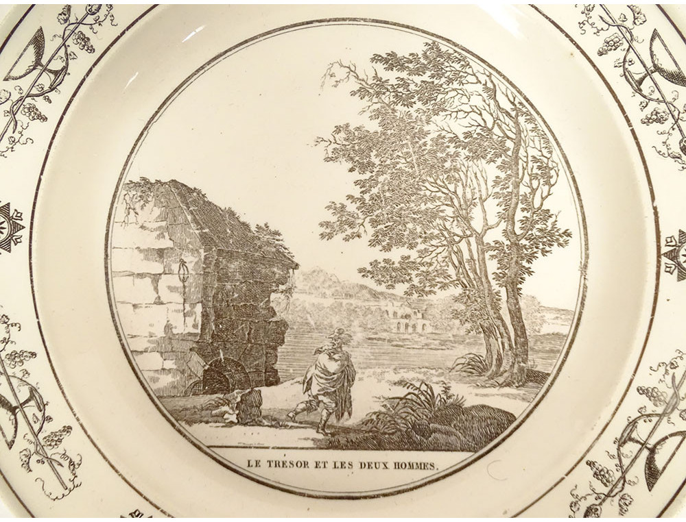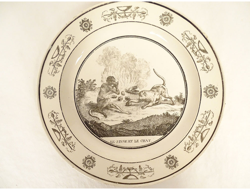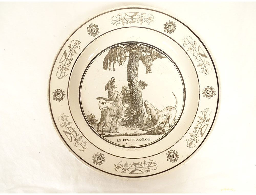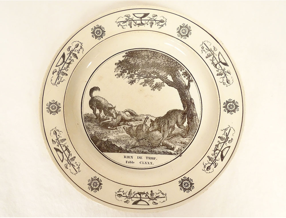 9 talking dessert plates, Creil Montereau earthenware, Fables of Fontaine, 19th century
