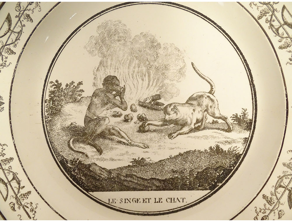 These plates are in good overall condition. The Fables depicted are: The Cat, the Weasel and the Little Rabbit - The English Fox - The Hare and the Partridge - The Mule Boasting of His Lineage - The Treasure and the Two Men - The Monkey and the Cat -