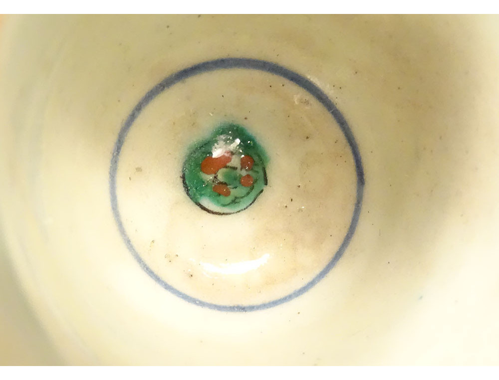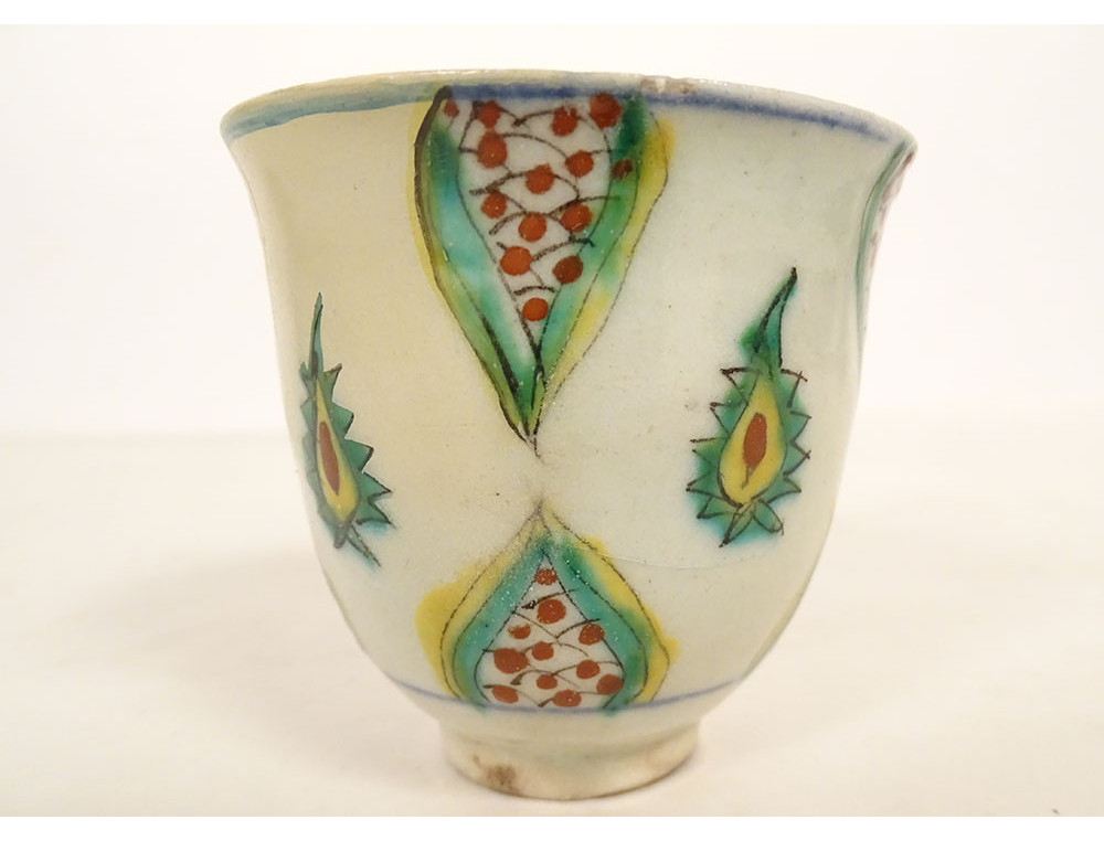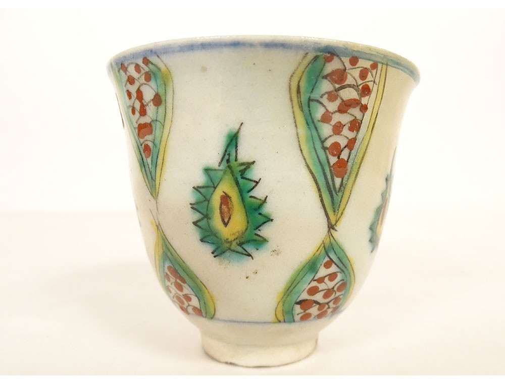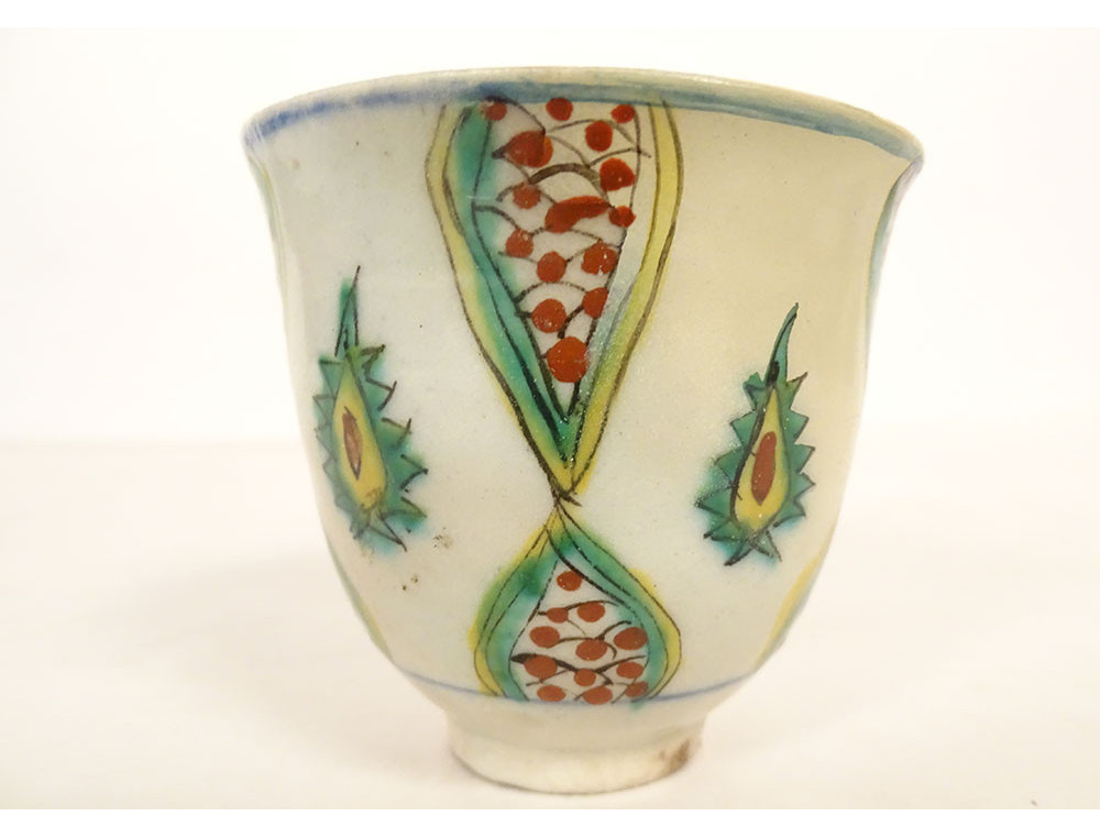 Ottoman ceramic bowl or cup from Kütahya, with rich decoration of stylized foliage, flowers and plant motif, in the background perhaps the representation of a mosque, provenance private collection (perhaps from the Muslim Art antique shop of Joseph Soustiel*), provenance Ottoman Turkey, 18th century period.