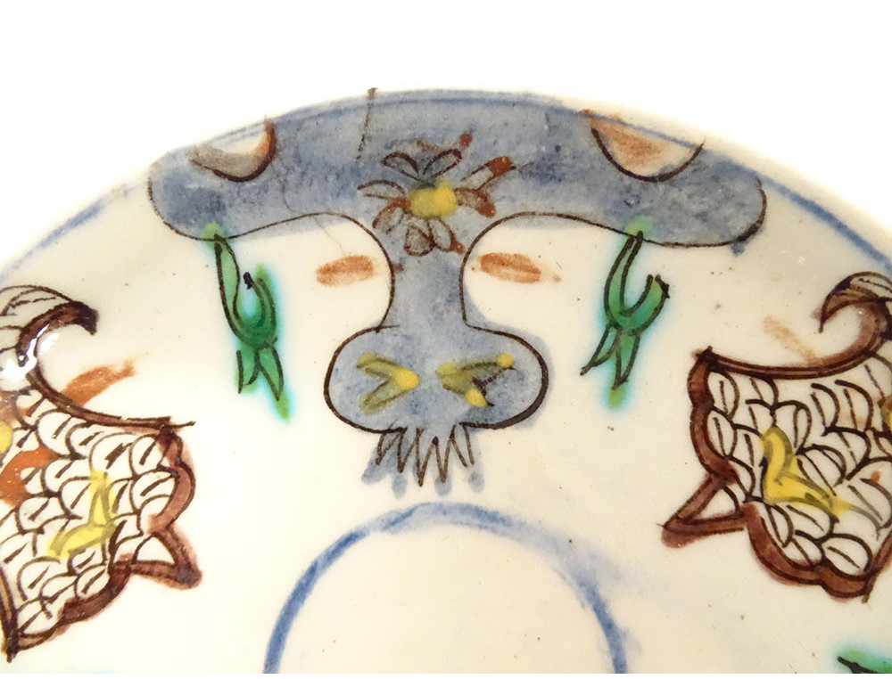 Ottoman ceramic bowl or cup from Kütahya, with rich decoration of stylized foliage, flowers and plant motif, in the background perhaps the representation of a mosque, provenance private collection (perhaps from the Muslim Art antique shop of Joseph Soustiel*), provenance Ottoman Turkey, 18th century period.