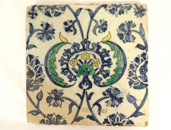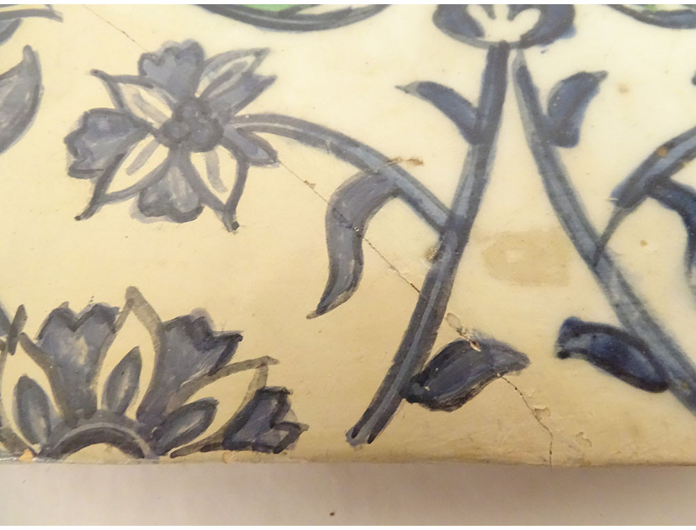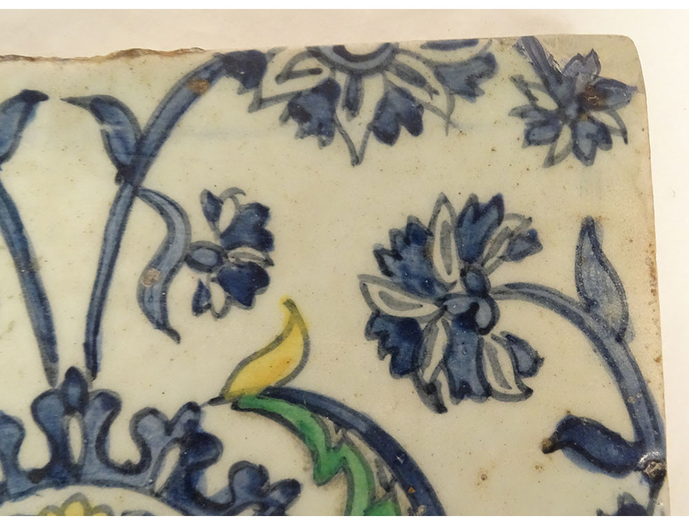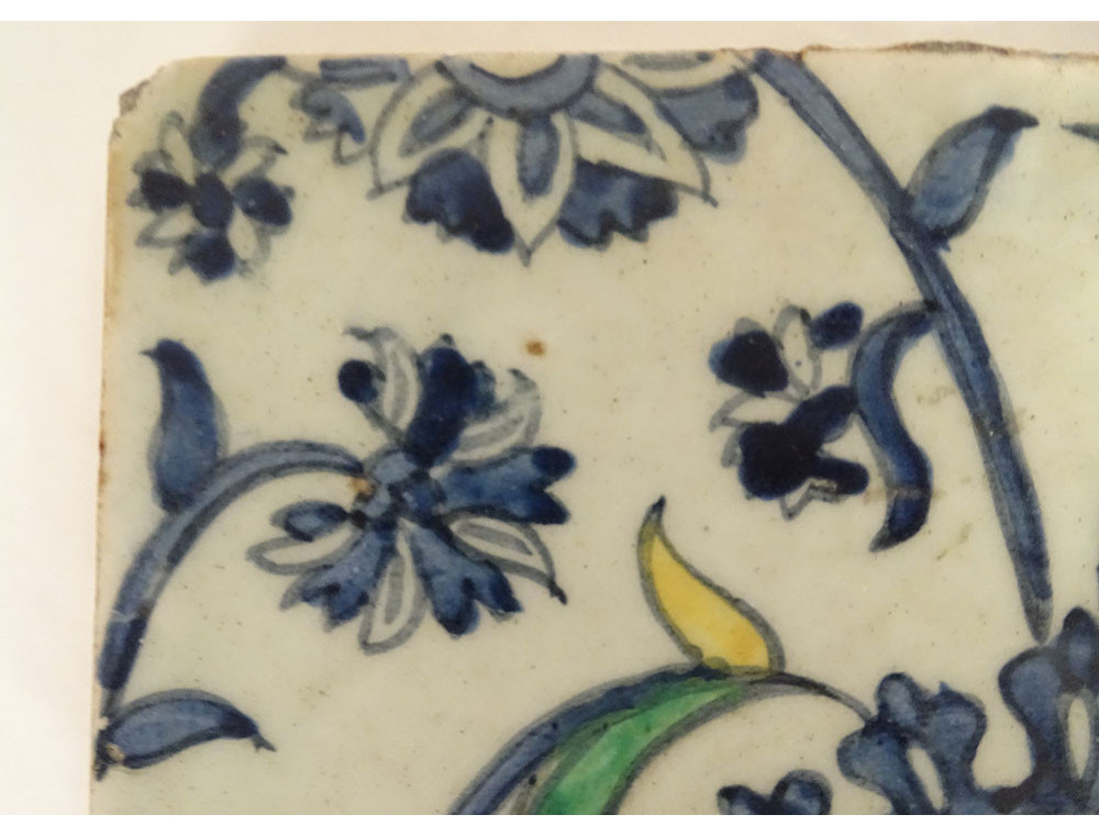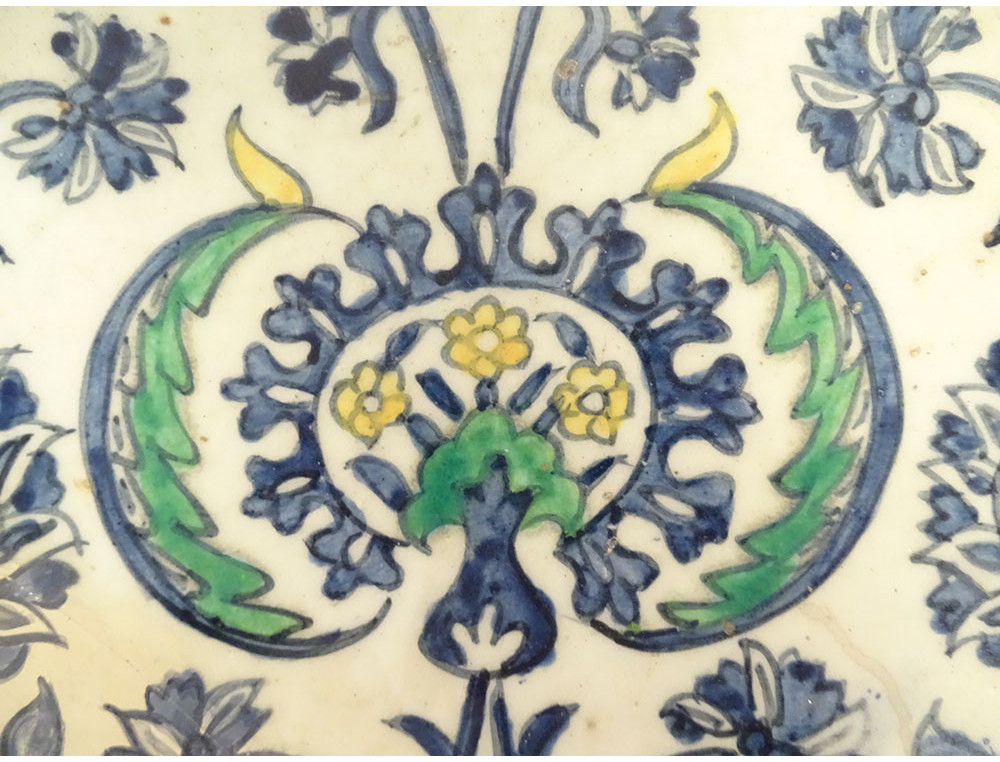 Ottoman ceramic bowl or cup from Kütahya, with rich decoration of stylized foliage, flowers and plant motif, in the background perhaps the representation of a mosque, provenance private collection (perhaps from the Muslim Art antique shop of Joseph Soustiel*), provenance Ottoman Turkey, 18th century period.
