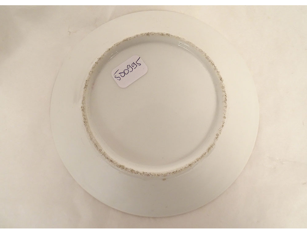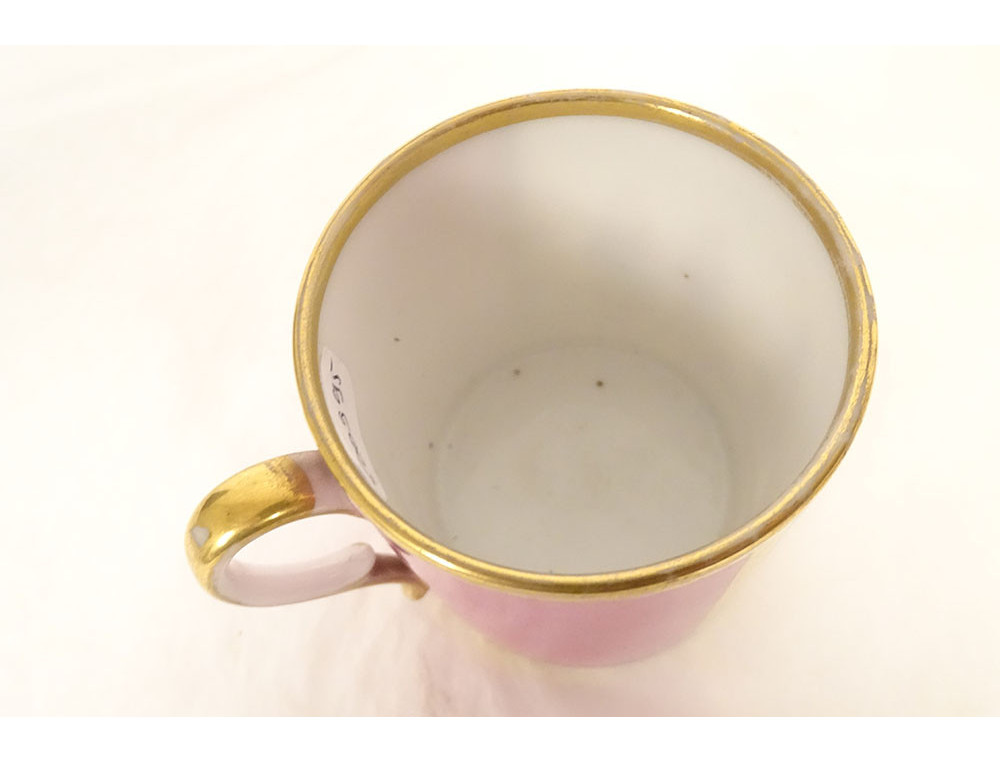 This cup and saucer are in good condition. The decoration is signed with initials. There is a trace of the signature under the cup (now erased).