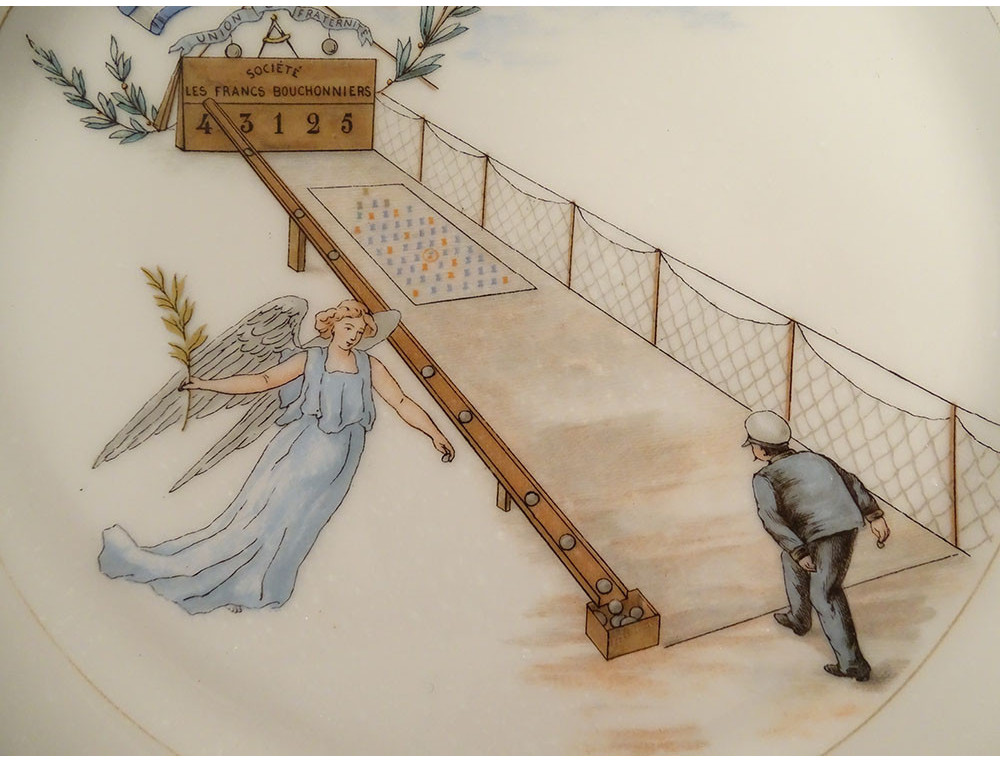 Jullien porcelain plate, Society cork game, 1895 Francs, cork makers