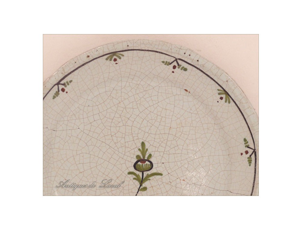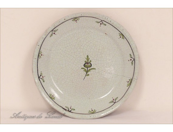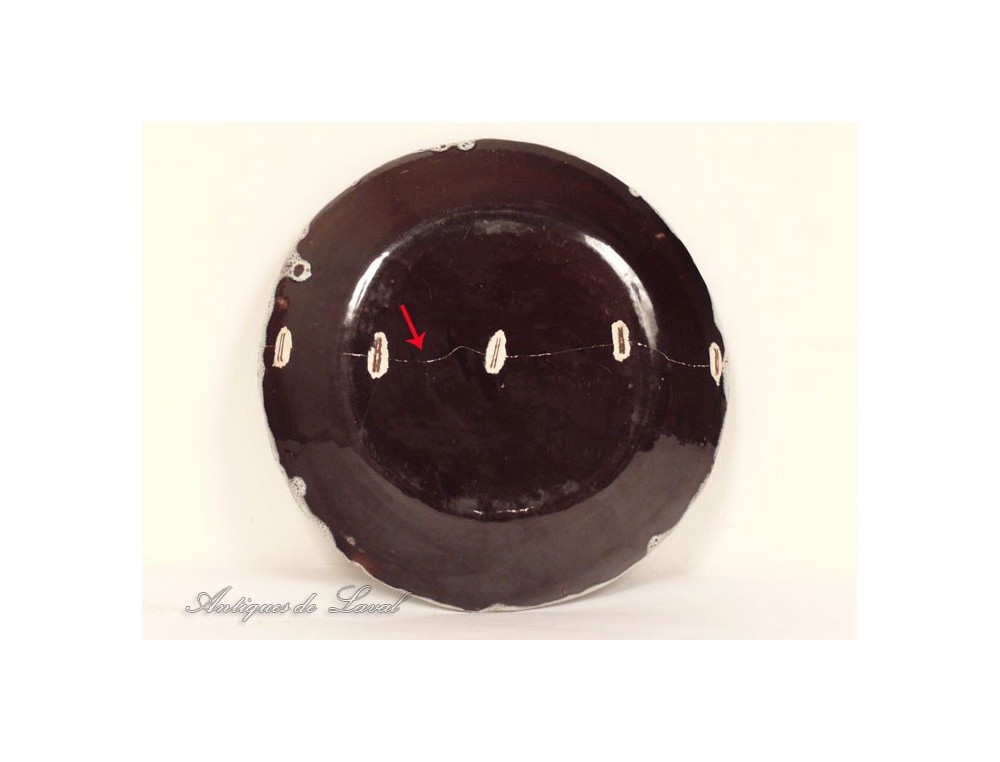 Very nice black ass earthenware plate decorated with a flower perhaps Forges-les-Eaux, of XIXth century.