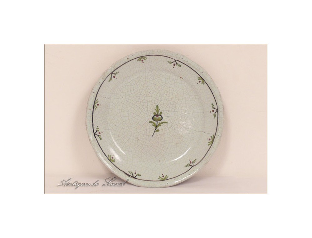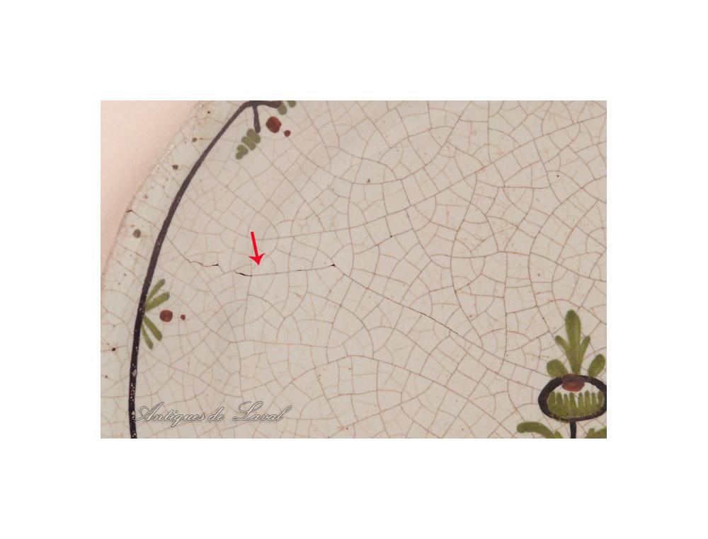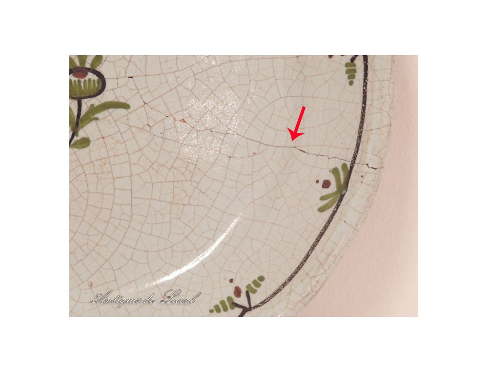 This plate is in good condition. A report: crack repaired with staples on the back. Dimensions: Diameter 24 cm