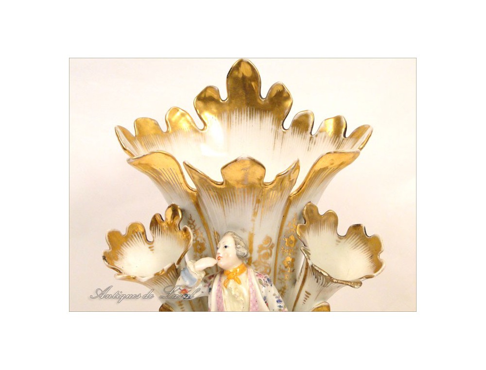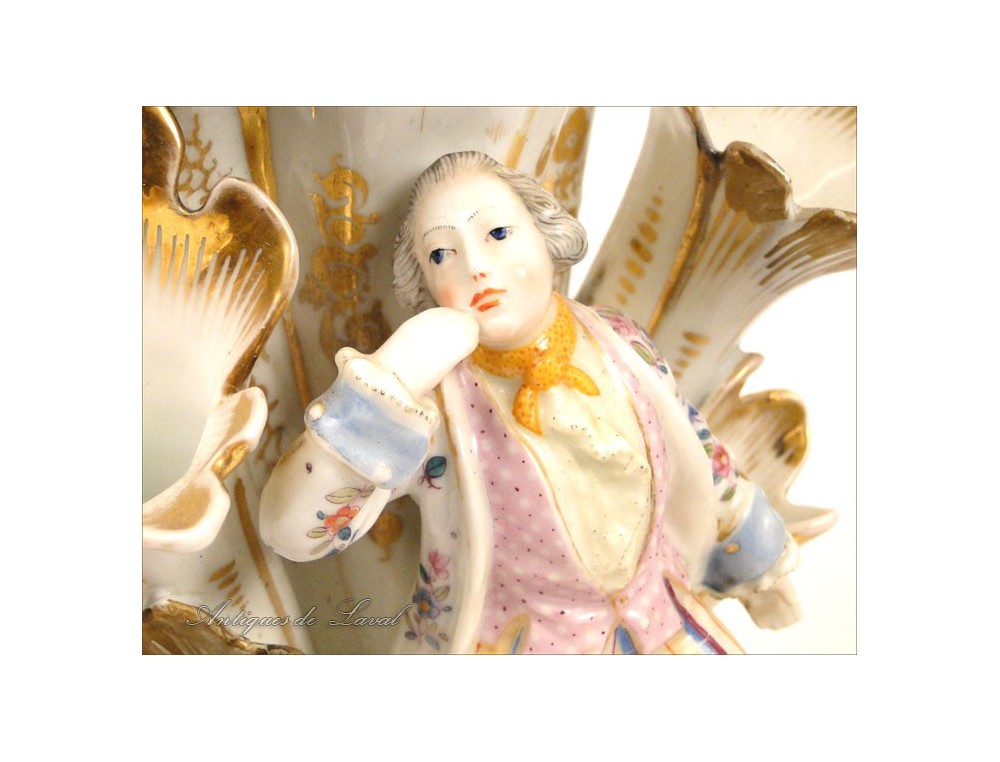 Grand Paris porcelain vase, decorated with a character gentleman, flowers and gilding, the quality of Jacob Petit porcelain, antique Louis-Philippe early nineteenth century.