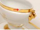 Lovely Paris porcelain saucer decorated with gilding, monogram and helmeted heads, antique Louis Philippe nineteenth century.