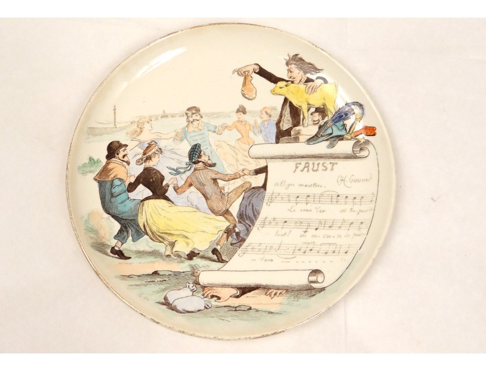 Very nice set of 6 plates earthenware Creil-Montereau Tierra del Fuego Series of Musical Topics representing famous operas with six different characters depicting the theme and scores, period late nineteenth and early twentieth centuries.