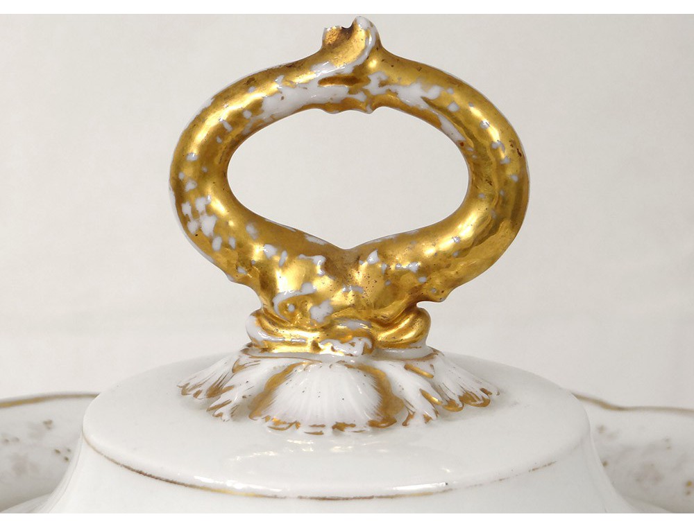 A note: shine on the inner container, broken and missing on a gooseneck foot, gilding is slightly worn in places, wear time, see photos.