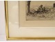 Engraving signed Jean Frélaut representing a landscape with a hamlet of thatched cottages in Brittany, most certainly in Morbihan, from the 20th century.