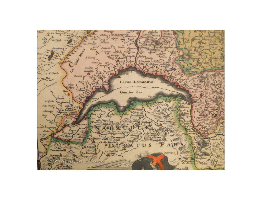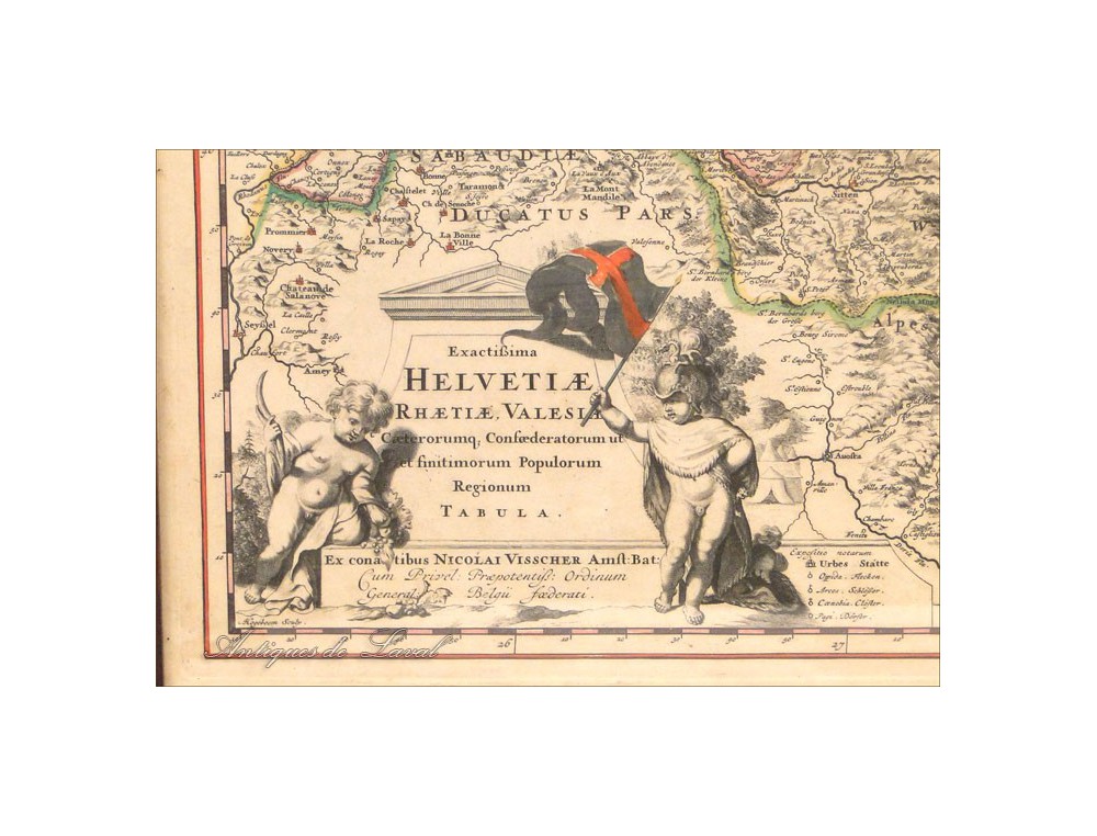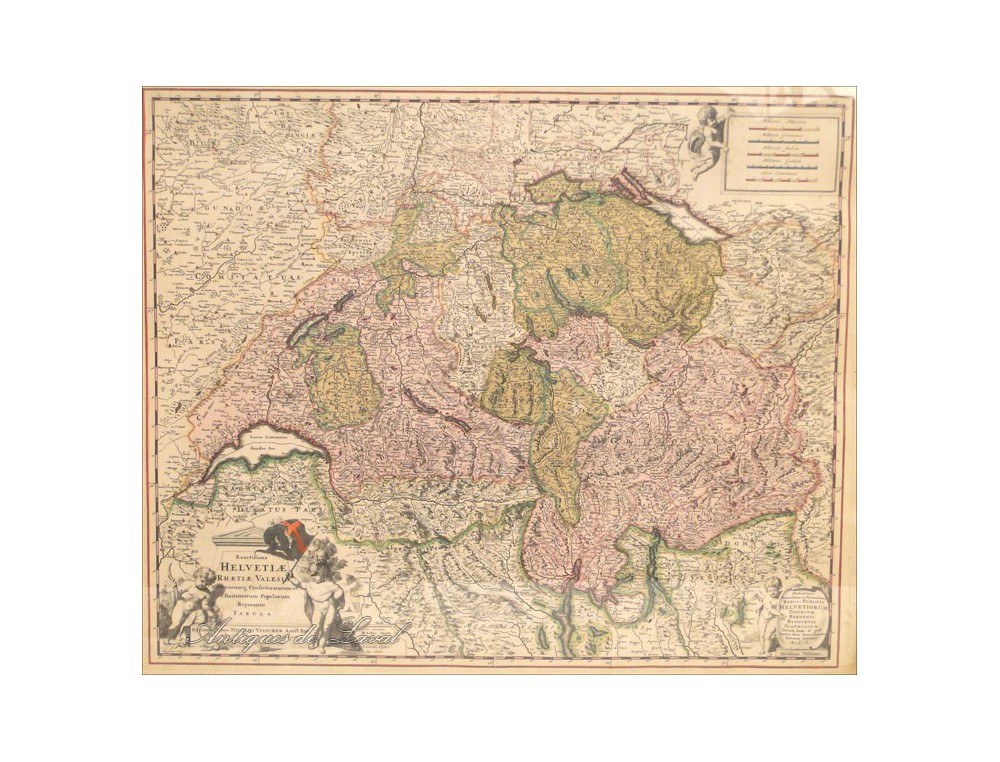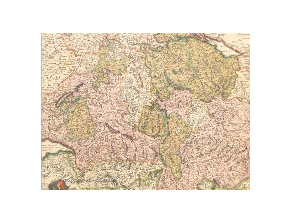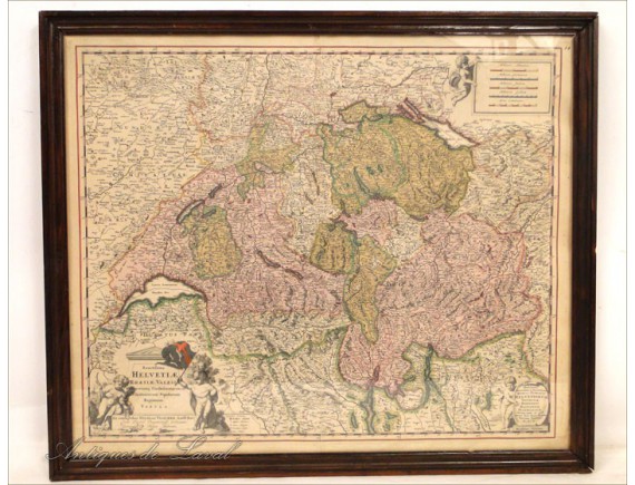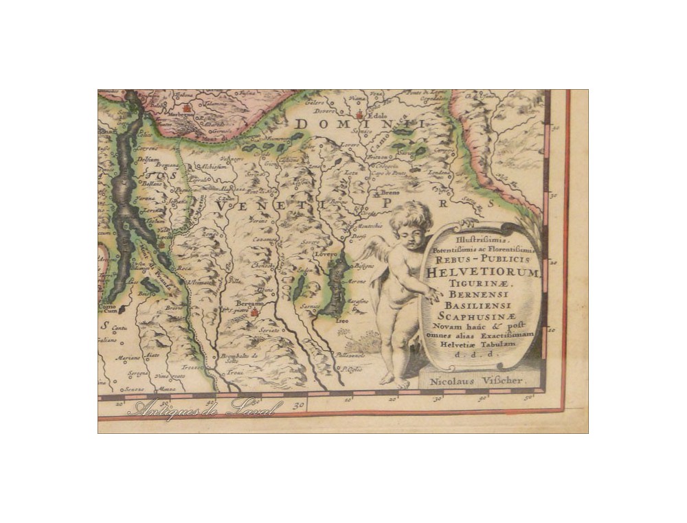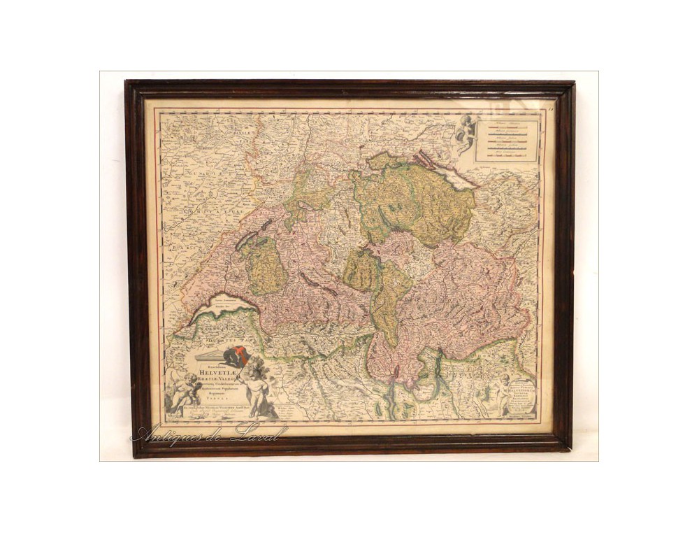Very nice print of a map of Helvetia, signed Nicolas Vissher * period end seventeenth-early eighteenth century.