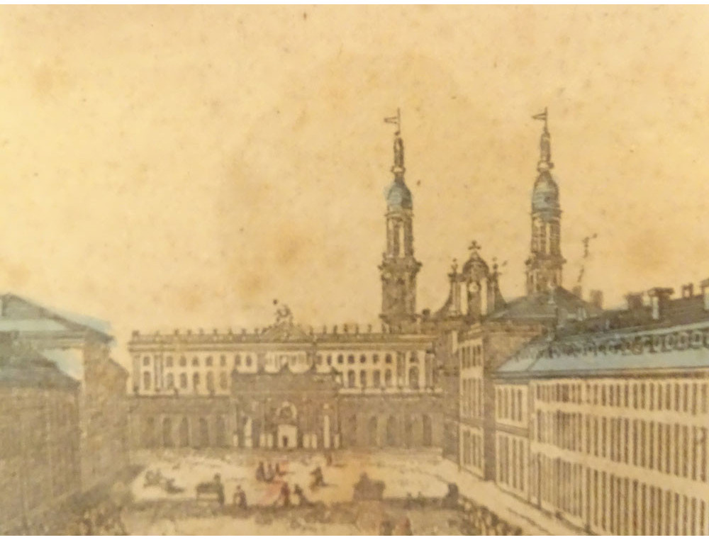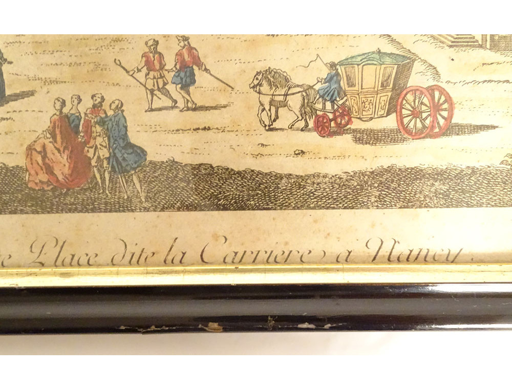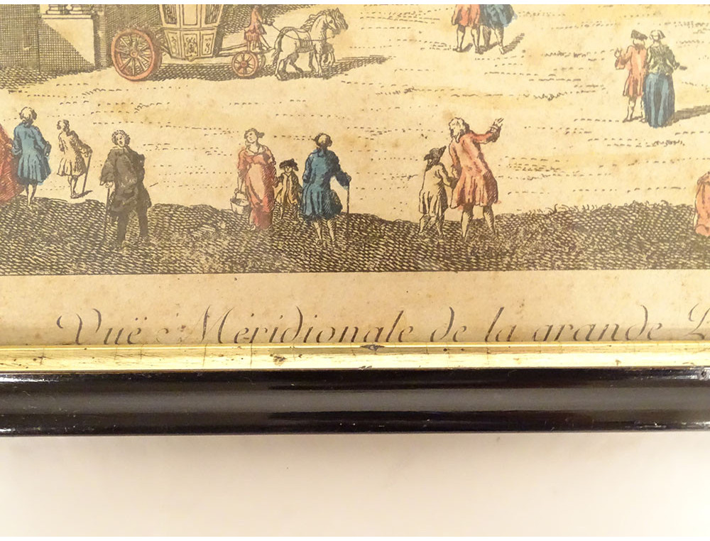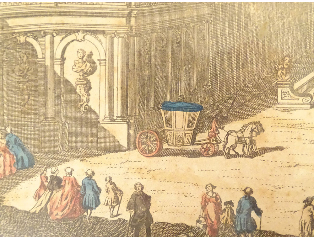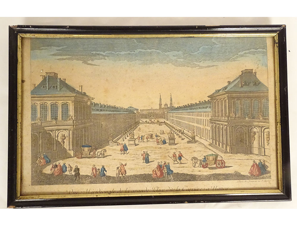 Watercolored optical view representing a view of Baïonne (Bayonne) in the Basque country (South West), in Paris at Basset* rue St Jacques in Ste Geneviève, from the late 18th-early 19th centuries.