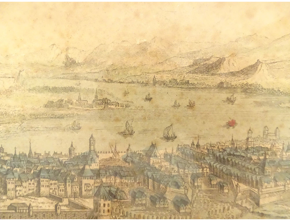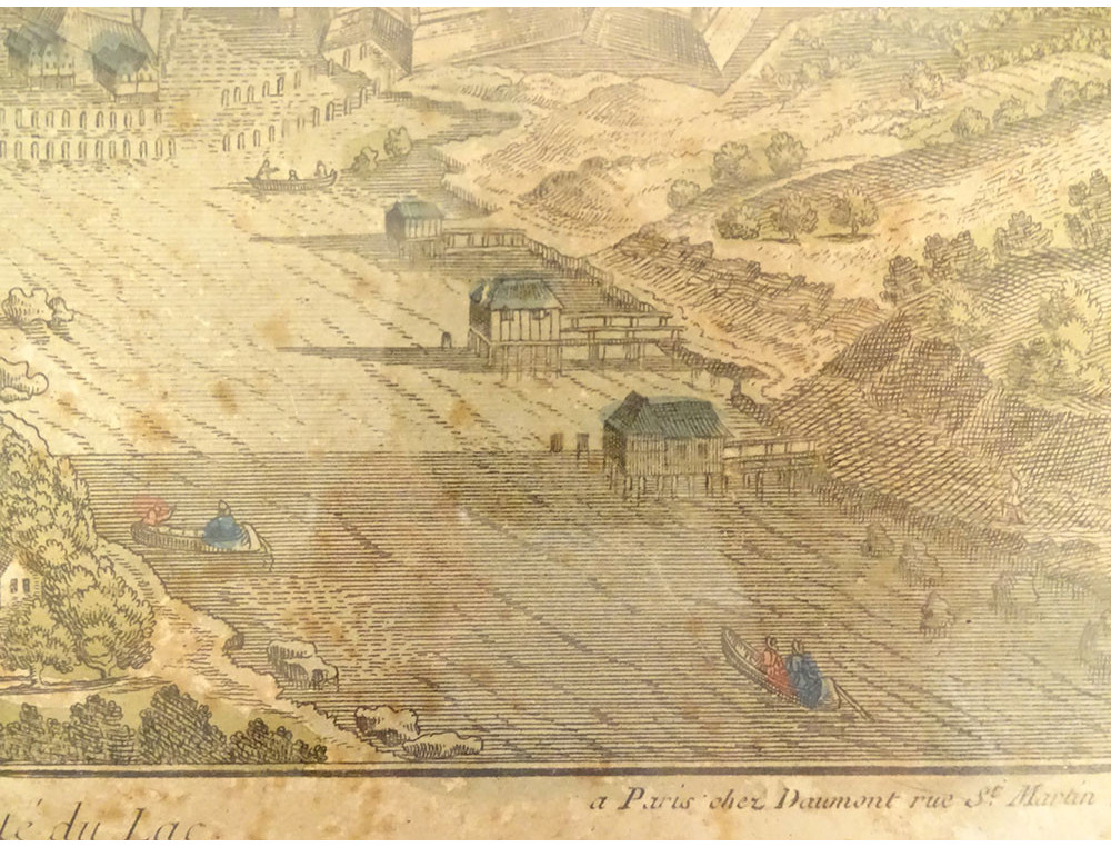 Please note: the paper is a little stained, pitted and yellowed, some damage to the frame, take a good look at the photos.