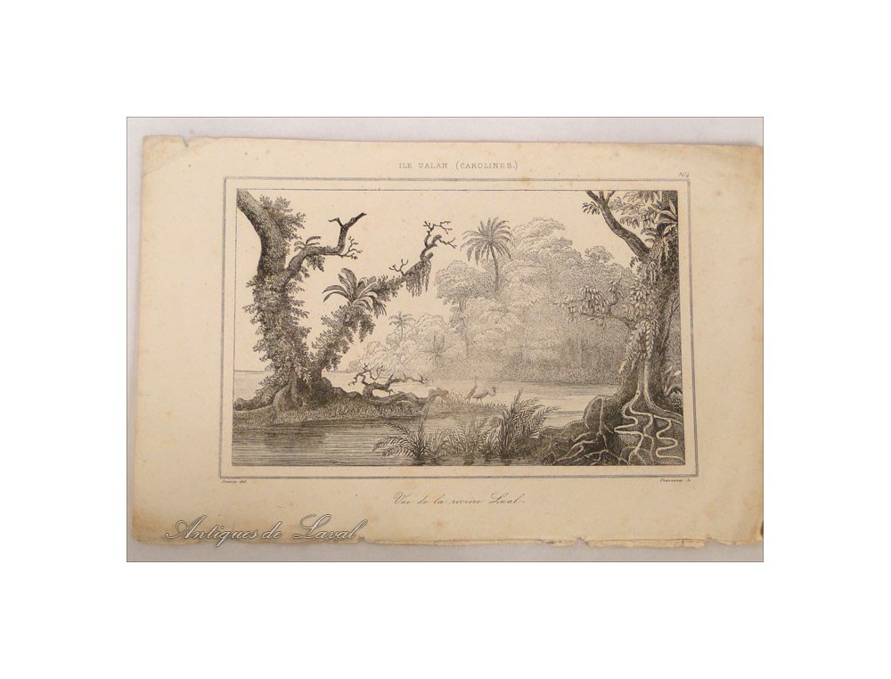 Very nice set of 6 prints depicting various landscapes and travel scenes: Hobart Town in Tasmania, an attack by natives Gambier Islands, River Island Lual to Ualan, a native holding a human head in New Zealand, a ravines to Ambon Island and Mount Keystone Crimean period late eighteenth and early nineteenth centuries.