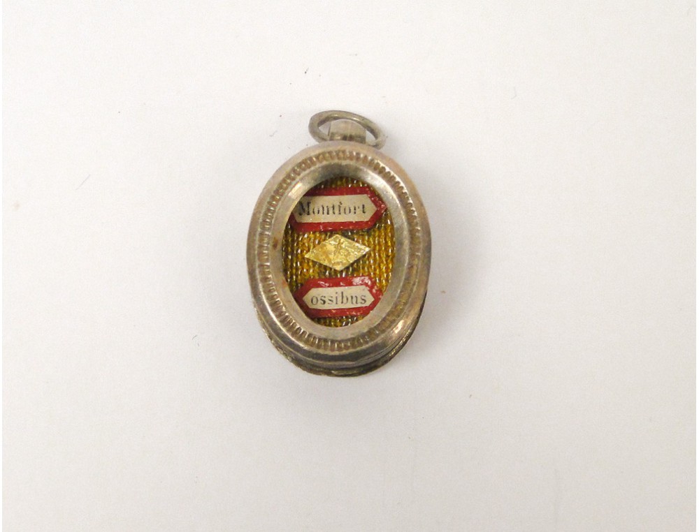 Reliquary oval pendant in sterling silver, dedicated to Saint Louis de Montfort, nineteenth