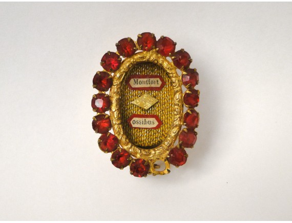 Reliquary, gilded medallion and rhinestone, dedicated to Saint Louis de Montfort, ossibus, nineteenth