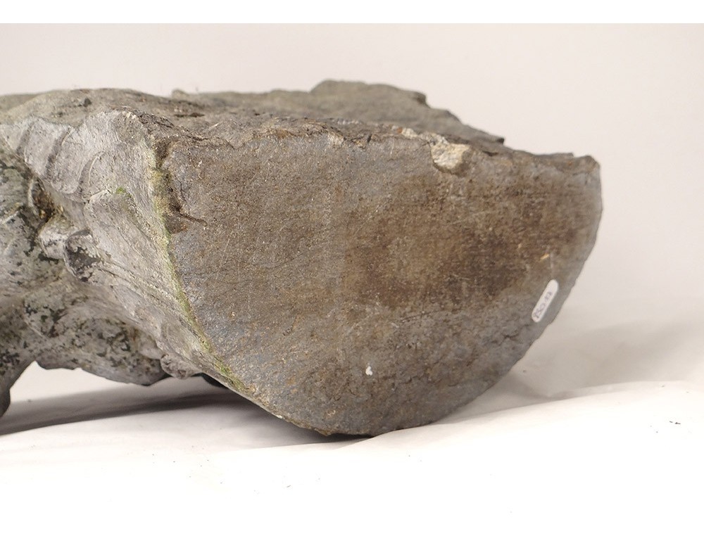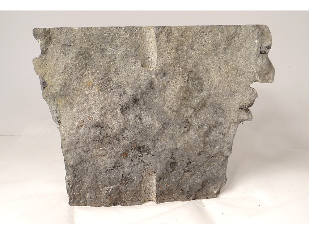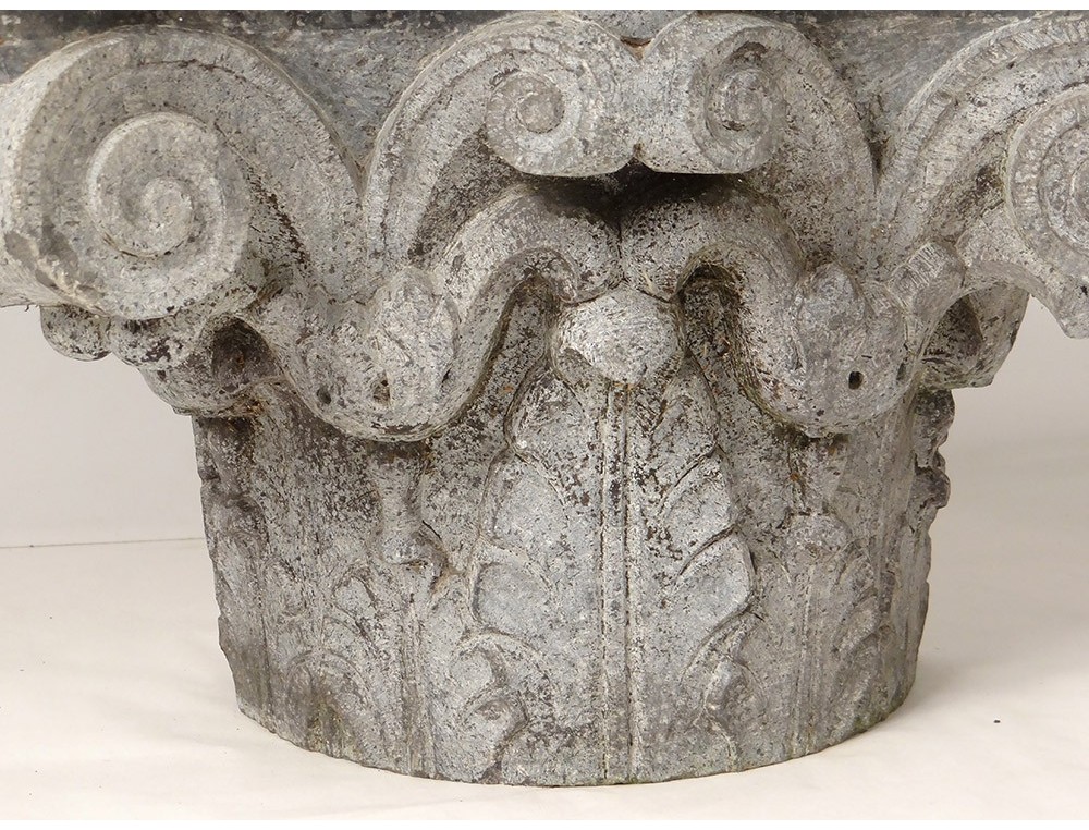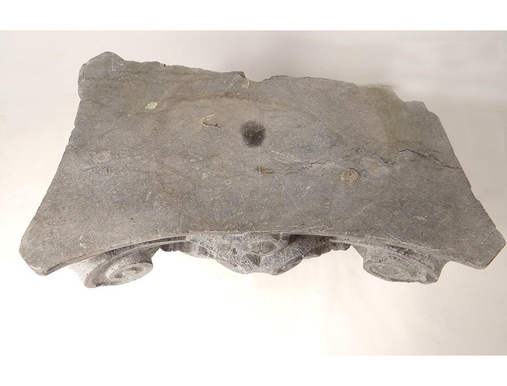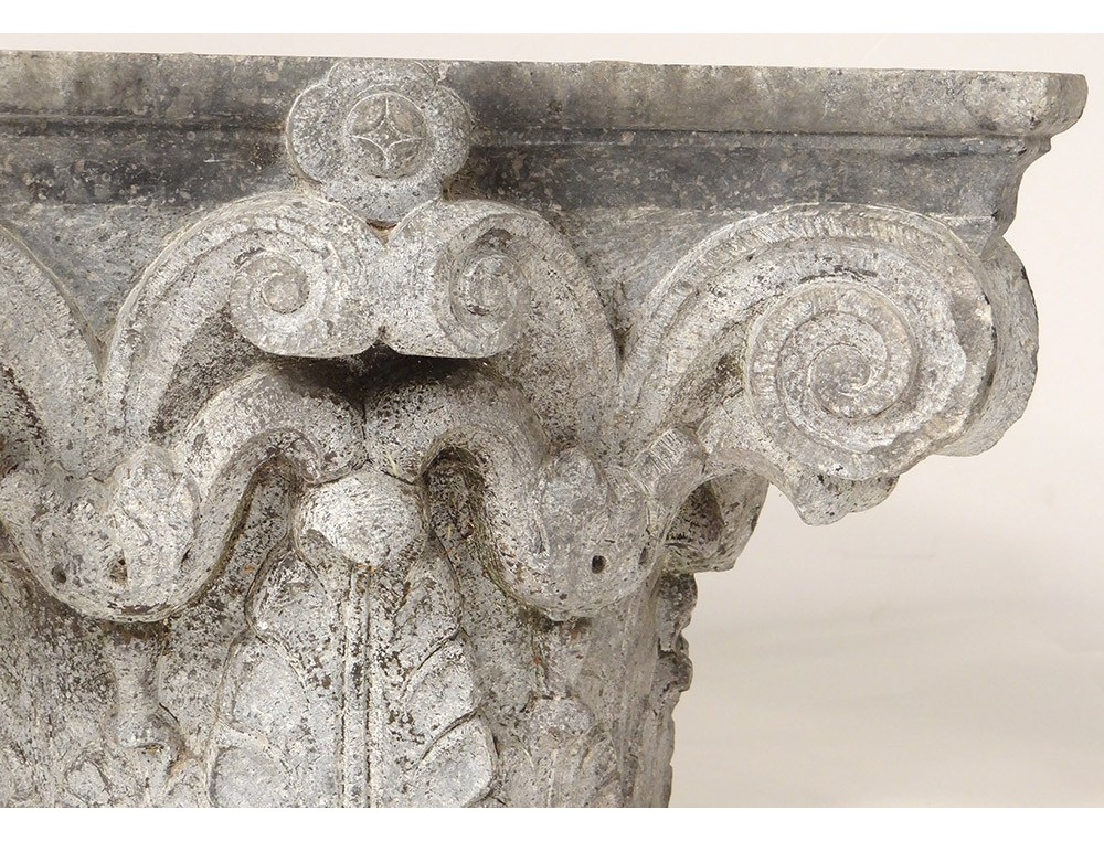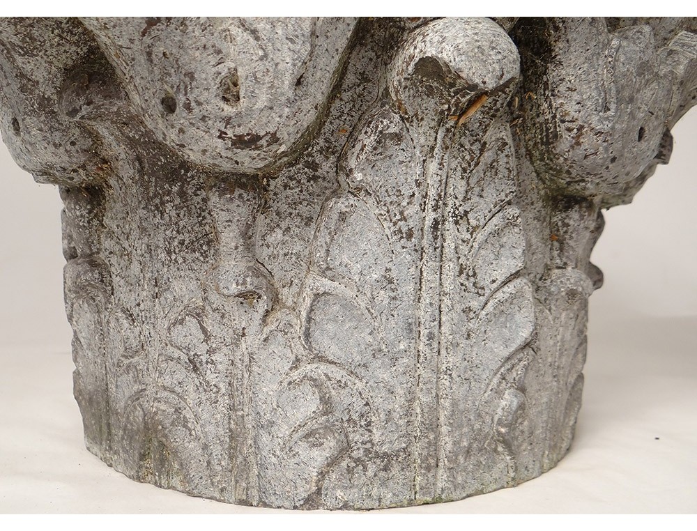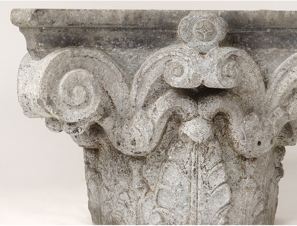 Gray marble sculpture representing a Corinthian capital with scrolls and acanthus leaves, vintage eighteenth century.