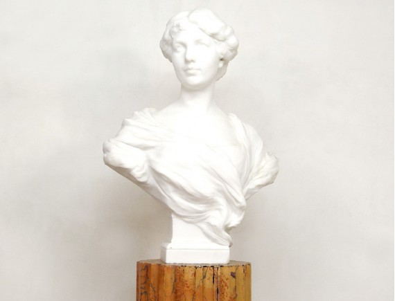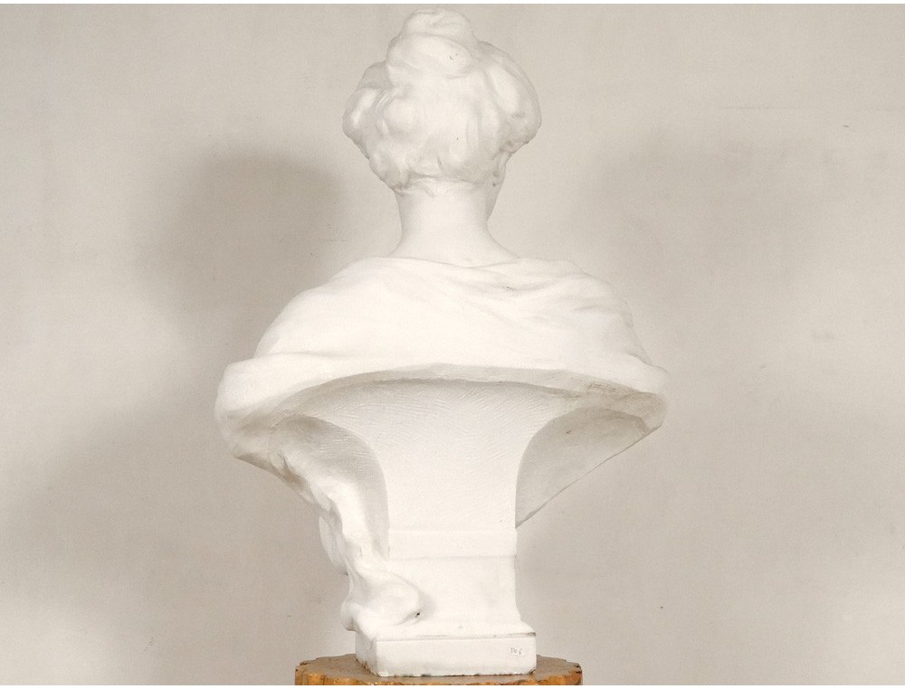 This bust is in very good condition and is of a remarkable quality of execution. It is signed on one shoulder. The saddle on which is placed the sculpture for the photos is not for sale.