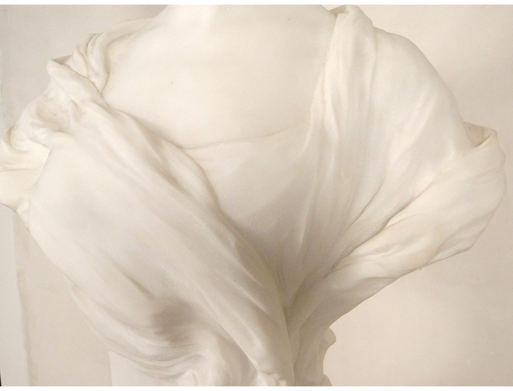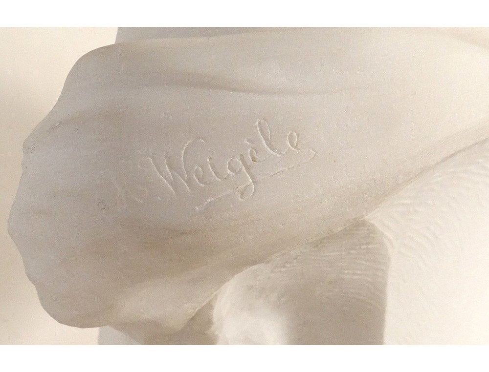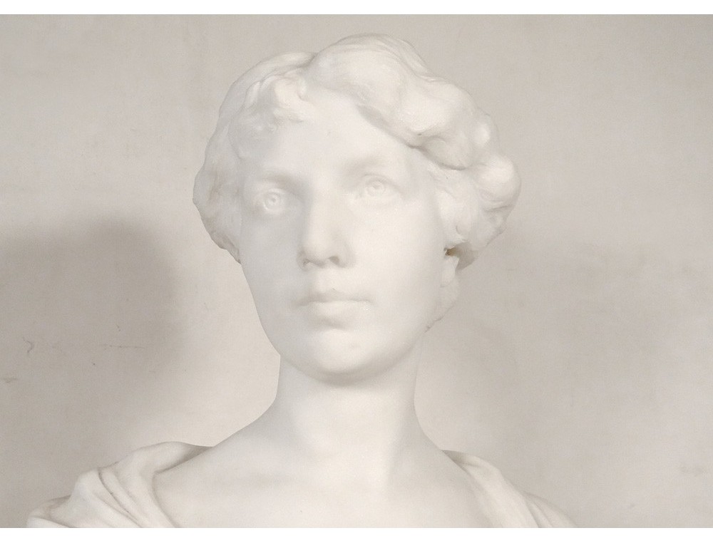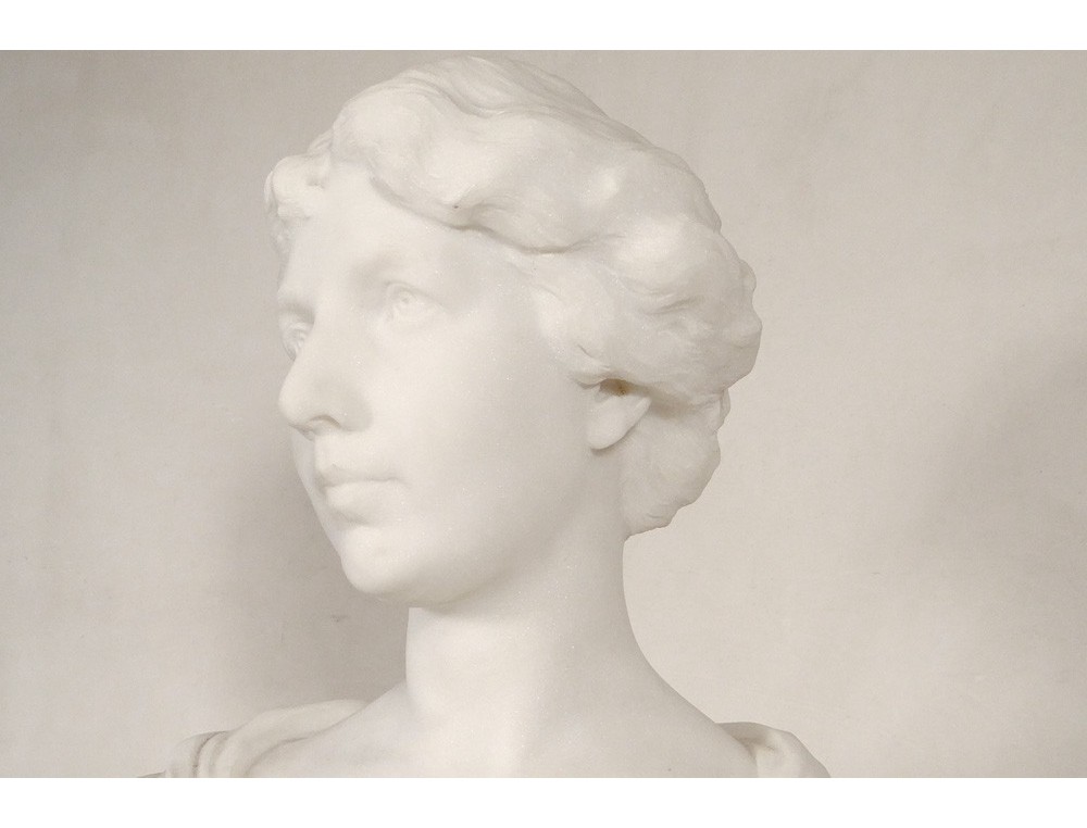 Exceptional and rare large Carrara marble sculpture * representing the bust of an elegant young woman, signed H.Weigele **, XIXth century.