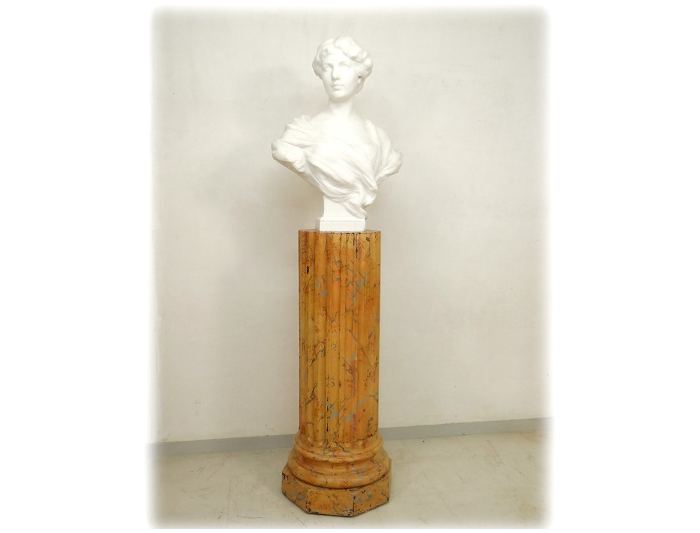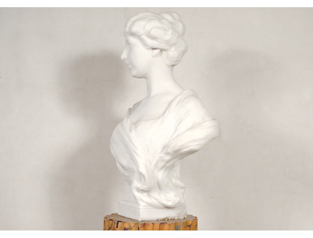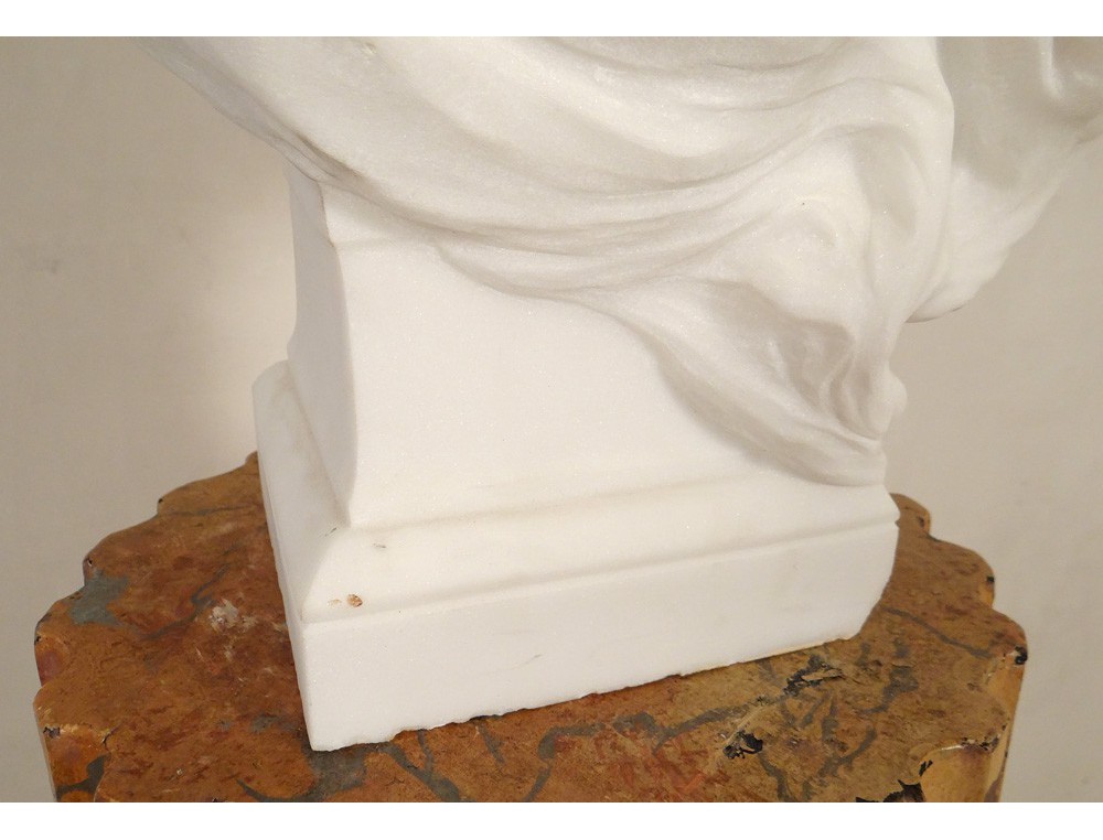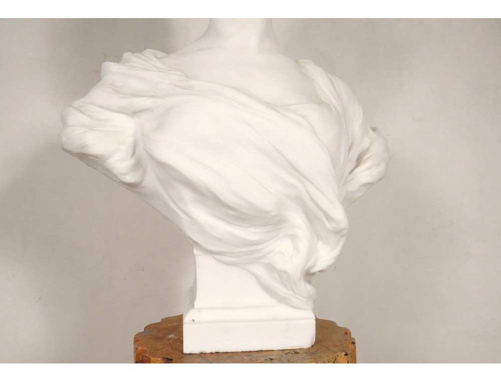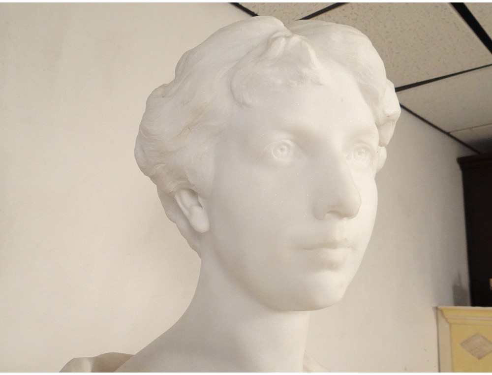 Exceptional and rare large Carrara marble sculpture * representing the bust of an elegant young woman, signed H.Weigele **, XIXth century.