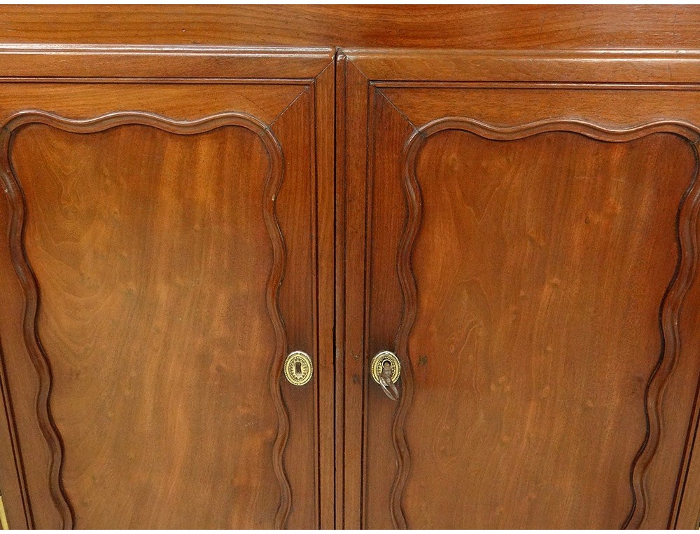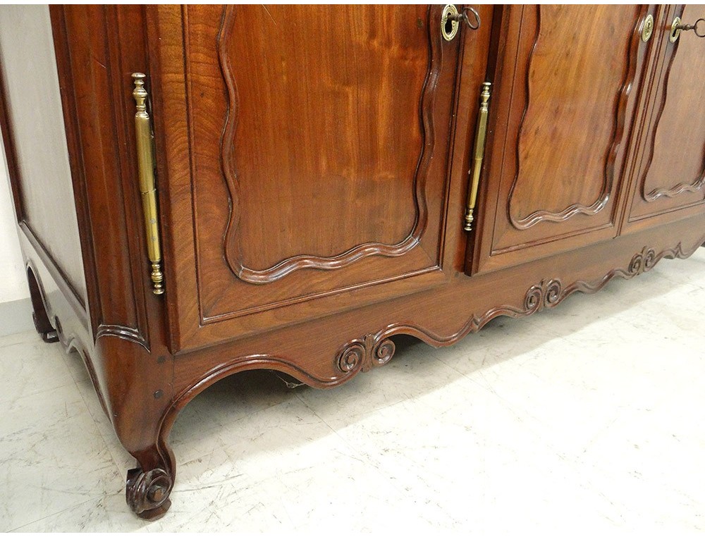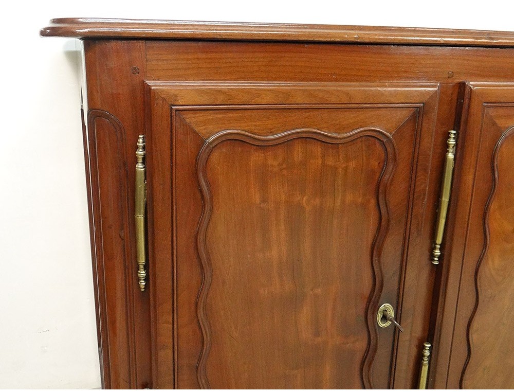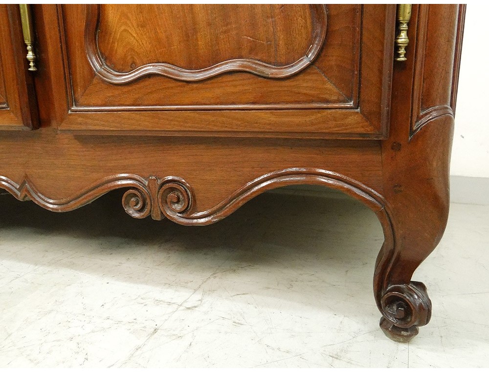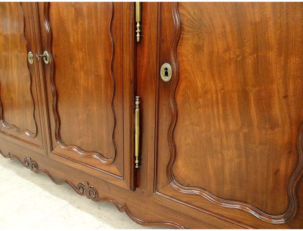 Buffet enfilade Louis XV Nantes, solid mahogany finely carved and molded, opening four doors concealing two small drawers, snails feet and scrolls in the low cross, vintage eighteenth century.