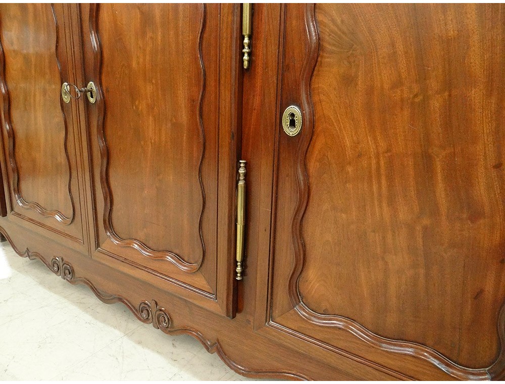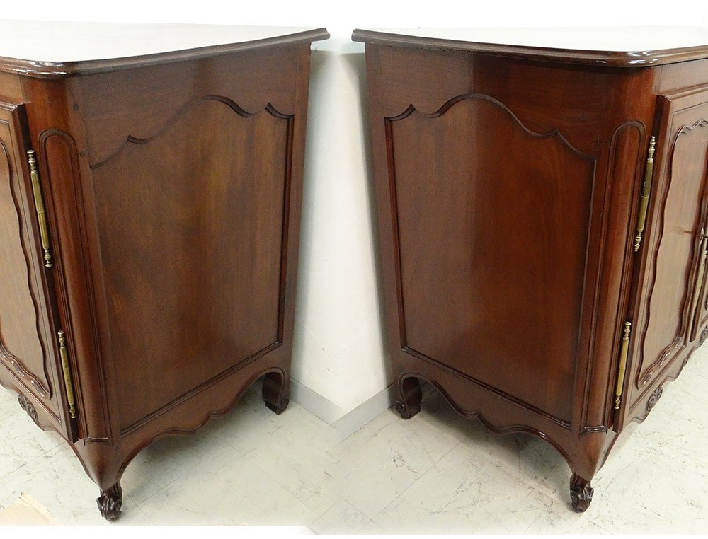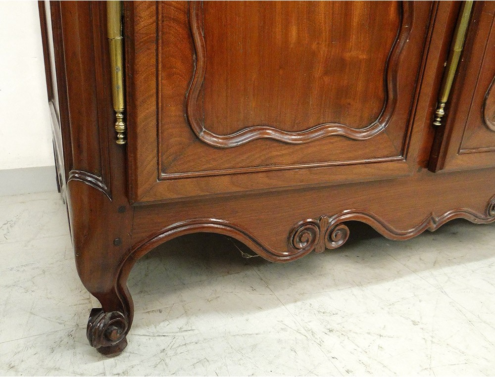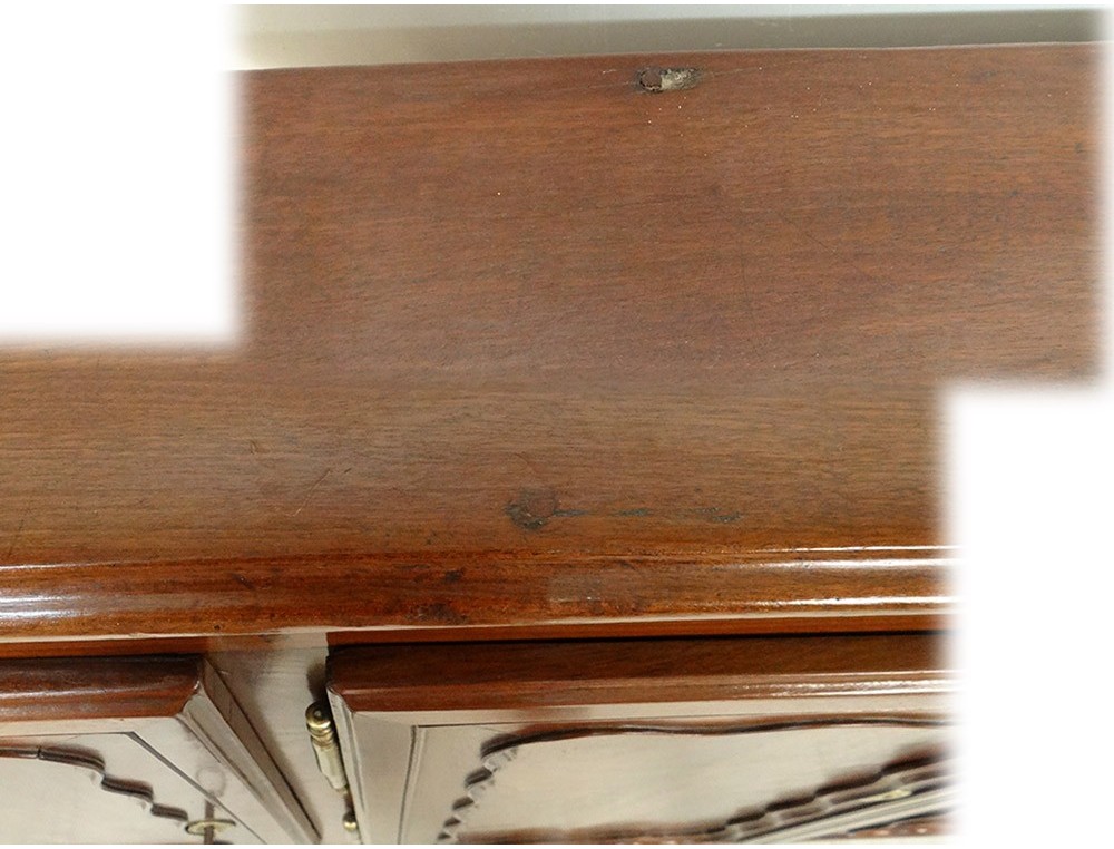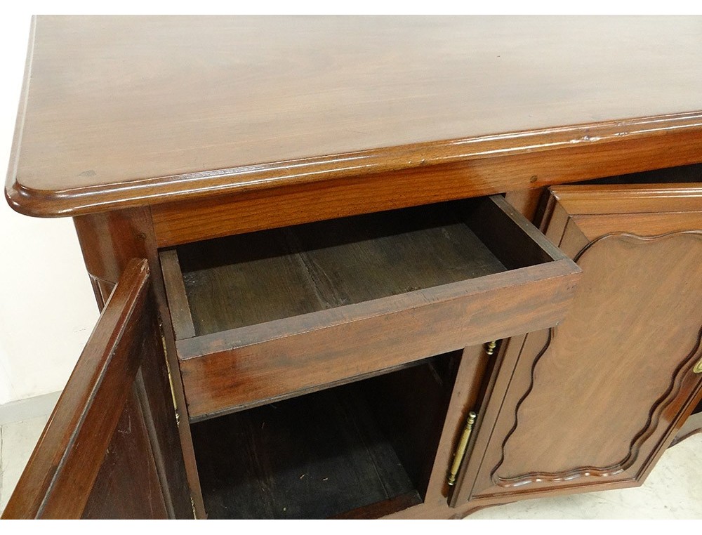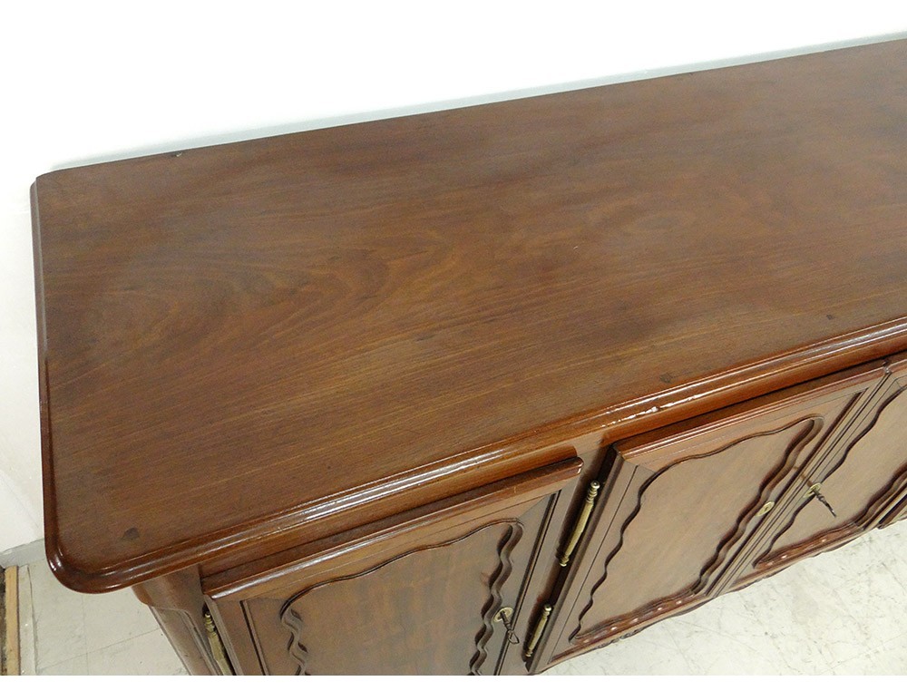 Buffet enfilade Louis XV Nantes, solid mahogany finely carved and molded, opening four doors concealing two small drawers, snails feet and scrolls in the low cross, vintage eighteenth century.