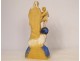 The " Santibelli " are statuettes generally around forty centimeters high . Molded in terracotta , but also in plaster , from Italy , they are painted in very bright colors , sometimes sprinkled with glitter, or gold leaf . The origin of the name of these statuettes is difficult to define: here we evoke a very Marseille nickname which describes as " Santibelli " the idiot of service , the sympathetic fool and not really smart . There, we imagine that " Santibelli " comes from the cry of the Italian sellers who, according to tradition, peddled these objects: " Santi ... Belli ... "; like a cry from the street , which in a short cut would have remained to designate these statuettes sold at auction .