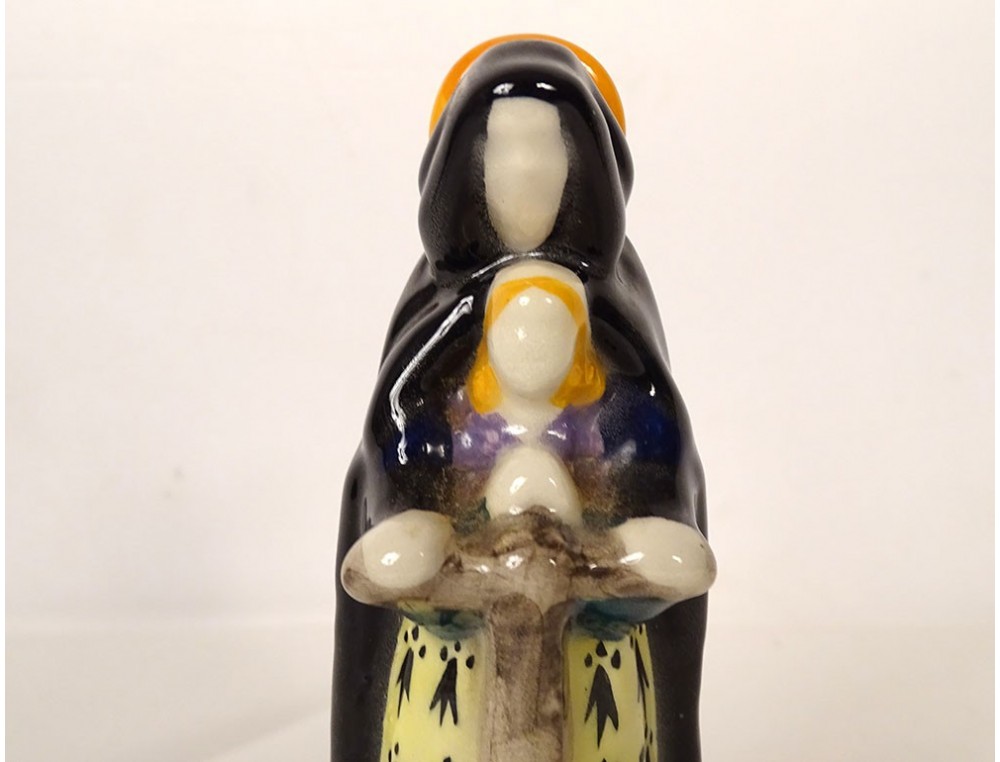Polychrome earthenware statuette signed Henriot HB Quimper, numbered F902 dP, representing Saint Anne of the Bretons holding a marine anchor and the Virgin Mary as a child in front of her, by H. Porson*, 20th century.
