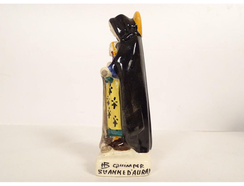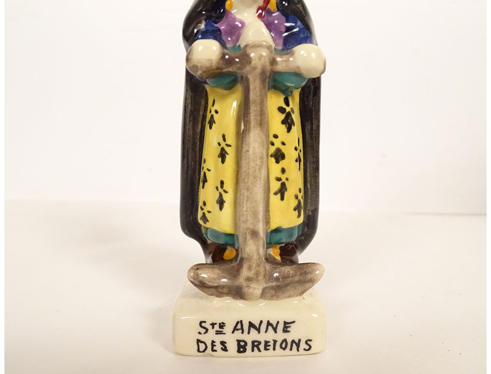 HB Quimper Porson earthenware statuette of Saint Anne of the Bretons anchor, 20th century