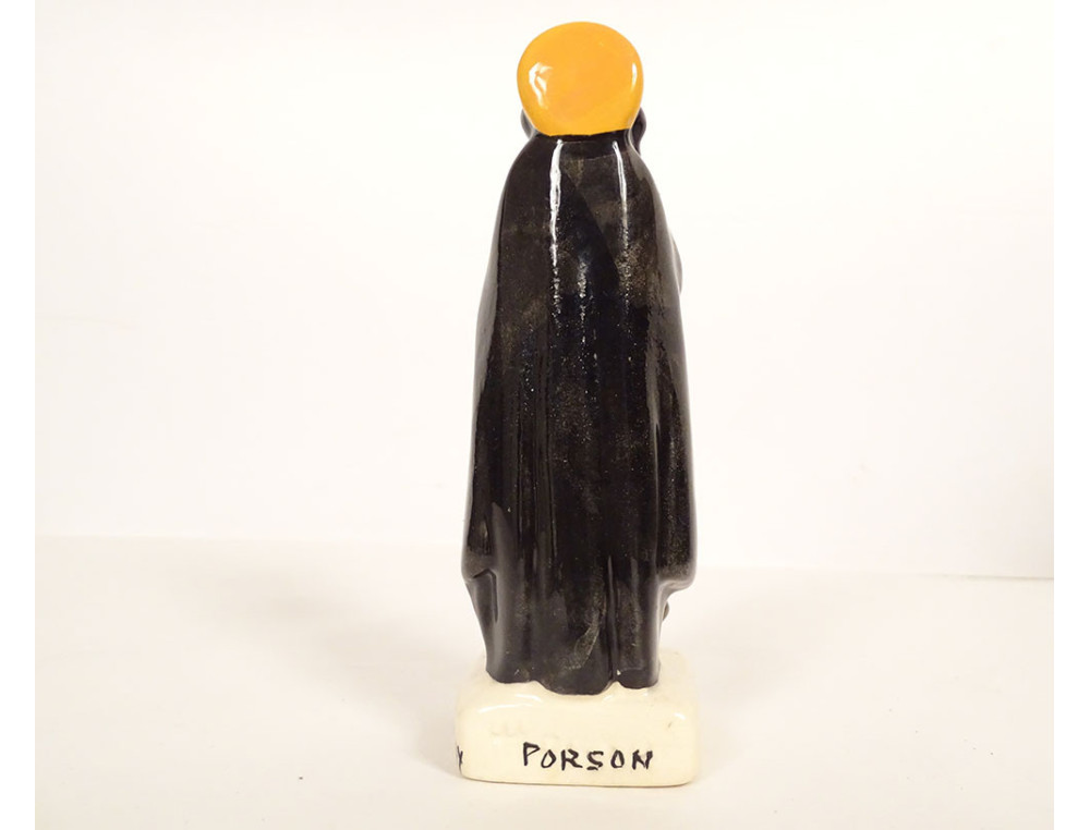Polychrome earthenware statuette signed HB Quimper, numbered P11 902, representing Saint Anne of the Bretons holding a marine anchor and the Virgin Mary as a child in front of her, by H. Porson*, from the 20th century.