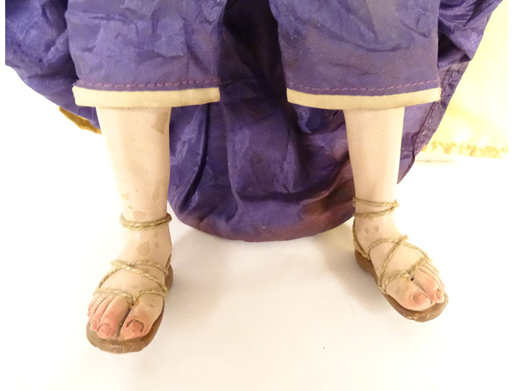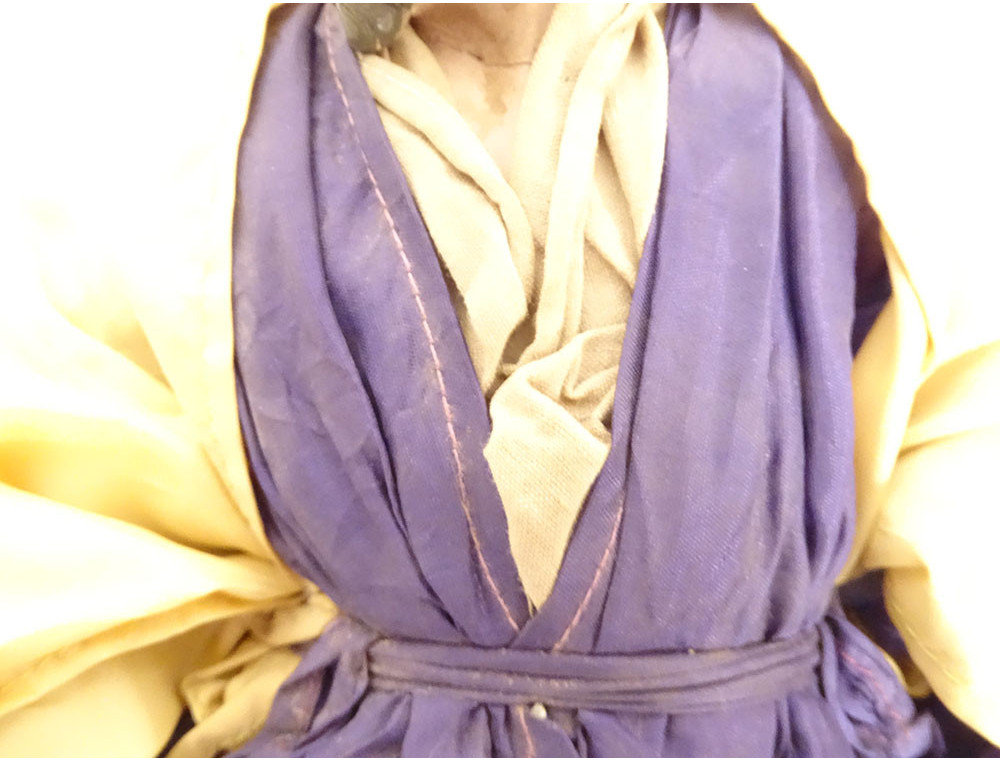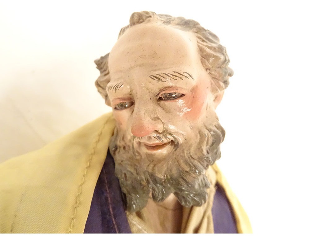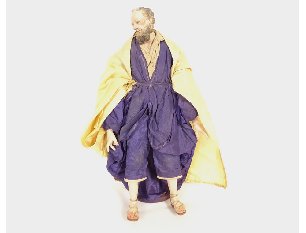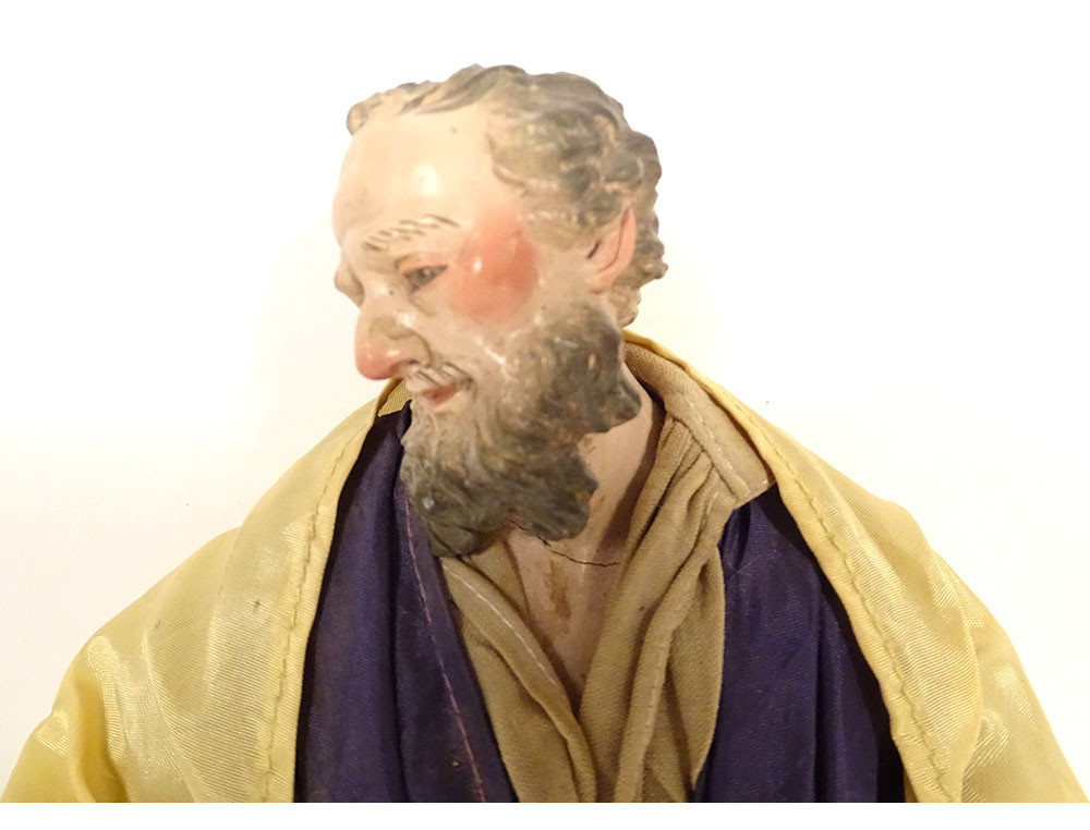 Neapolitan santon* (nativity scene figure) in polychrome terracotta, representing Saint Joseph in a purple tunic and yellow cape, from Naples - Italy, 19th century