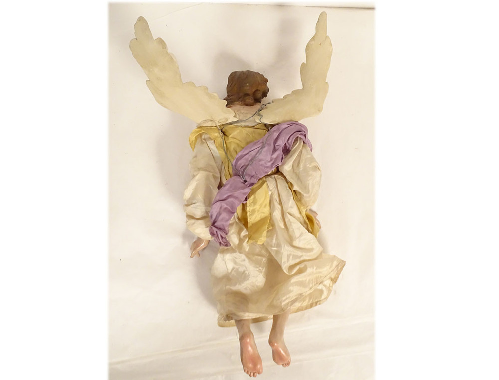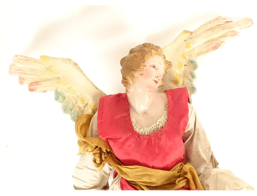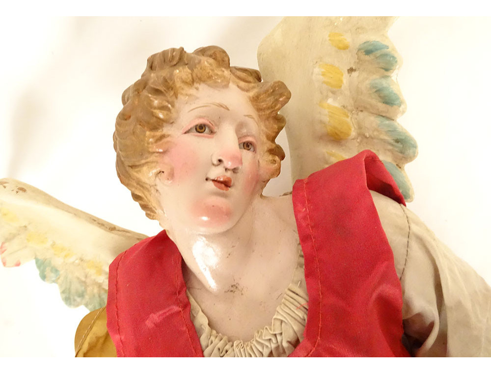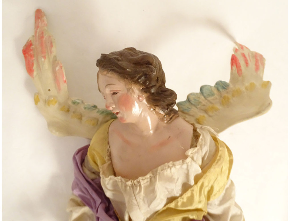 Pair of Neapolitan nativity angels (characters known as Neapolitan santon*) in polychrome terracotta, with multicoloured wings, from Naples - Italy, 19th century