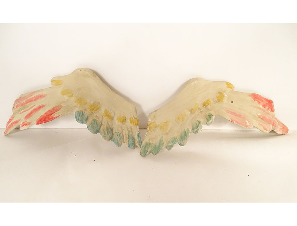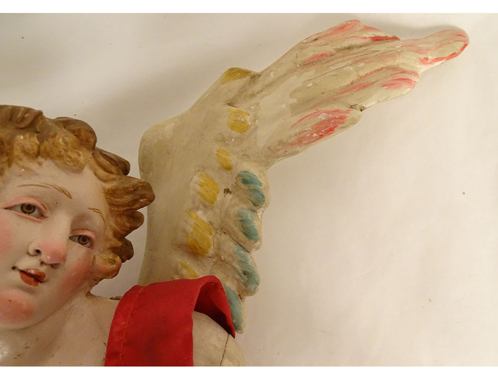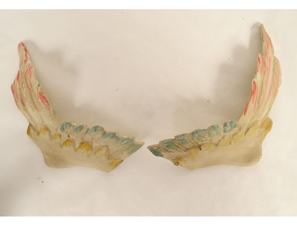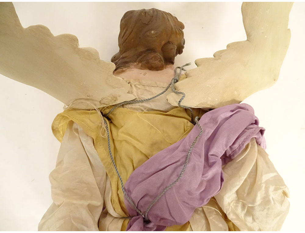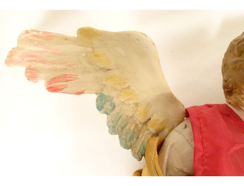 Pair of Neapolitan nativity angels (characters known as Neapolitan santon*) in polychrome terracotta, with multicoloured wings, from Naples - Italy, 19th century