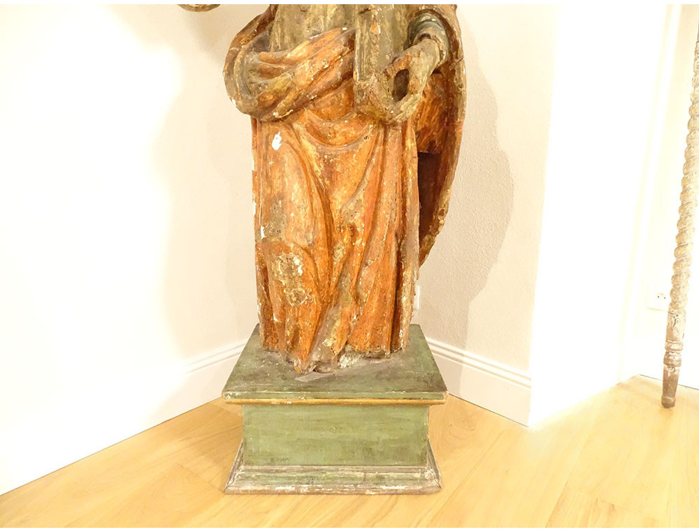Large sculpture of Saint Peter, polychrome carved wooden religious statue, 17th century