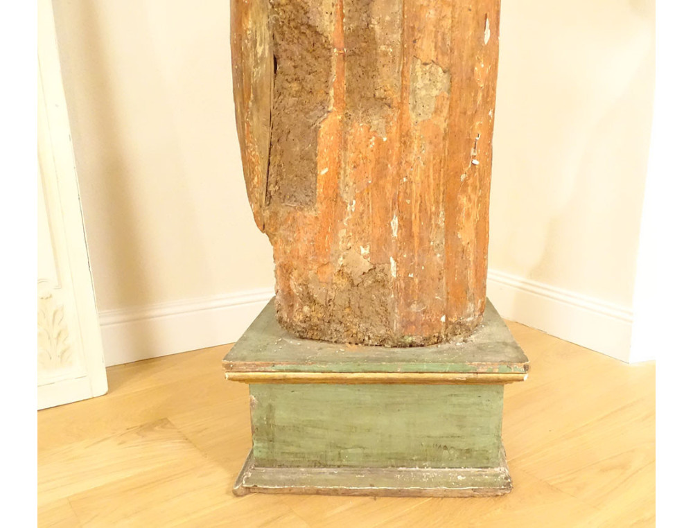 Please note: numerous accidents, missing and cracked wood, old wormholes, wear and tear and loss of polychromy, look carefully at the photos for details.