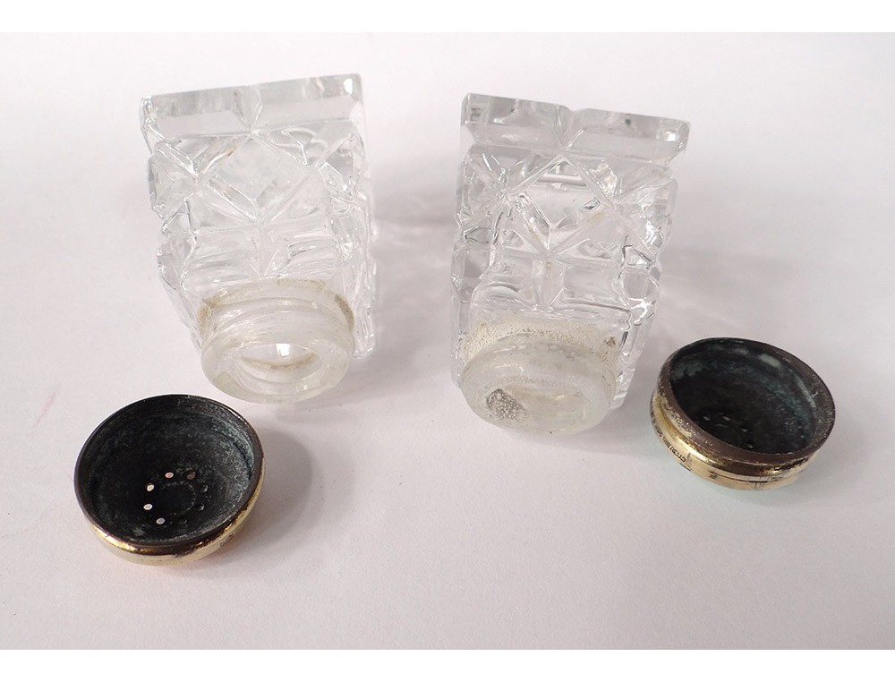 These salt shakers are in good condition. the money may have been ruddy (worn vermeil).