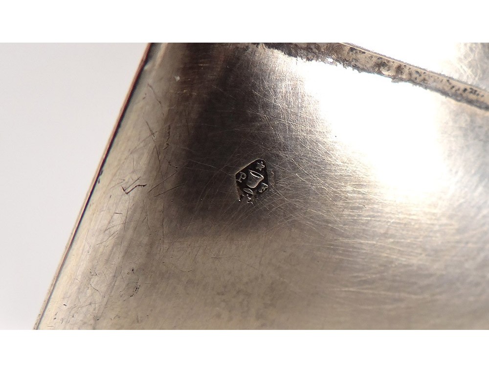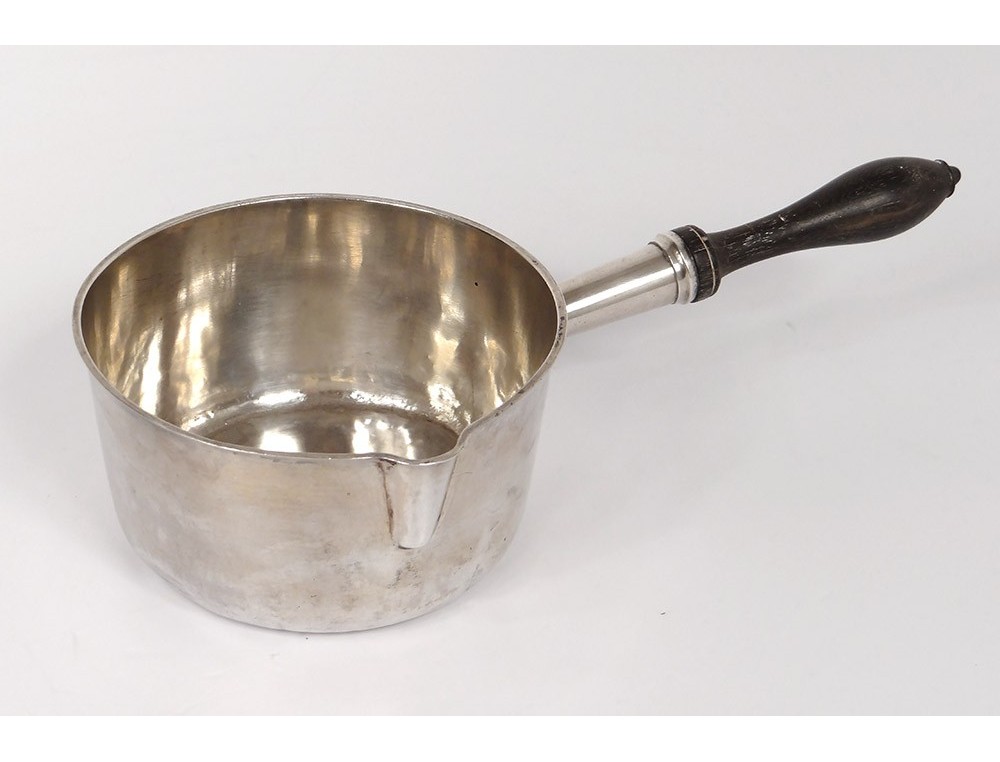 Saucepan in solid silver, blackened wooden handle, punch boar head and PF goldsmith's mark, XIXth century.