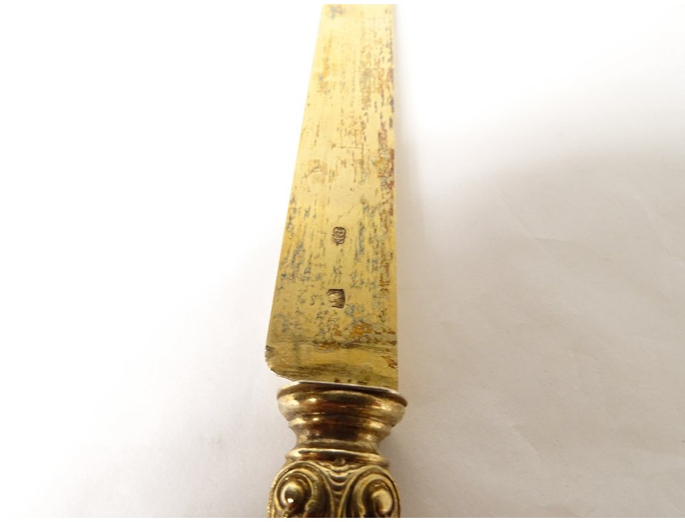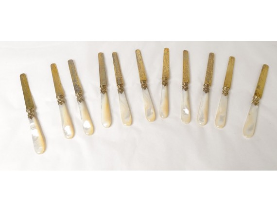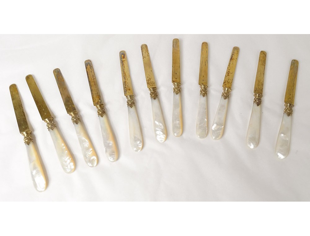 Set of 11 vermeil blade knives with mother-of-pearl handle, XIXth century.