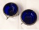 Pair of salt shakers or salt cellars in finely chiseled solid silver decorated with masks or Bacchus heads framed by two birds on the uprights, hallmarked with the Rooster (1st title Paris 1803-1809) and goldsmith FJJB for Jacques-Florent-Joseph Beydel *, d 1st Empire period, early 19th century.