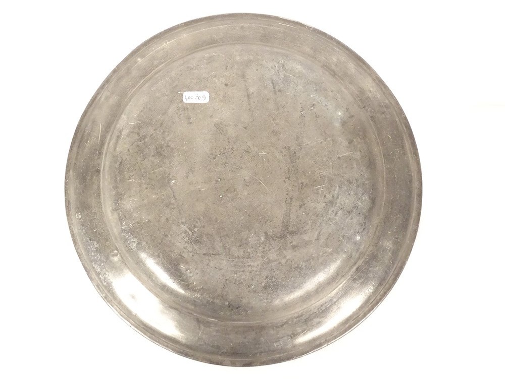 Round pewter dish with monogram hallmark late 18th century