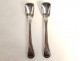 Pair of two silver-plated metal salt scoops or spoons, from the late 19th century.
