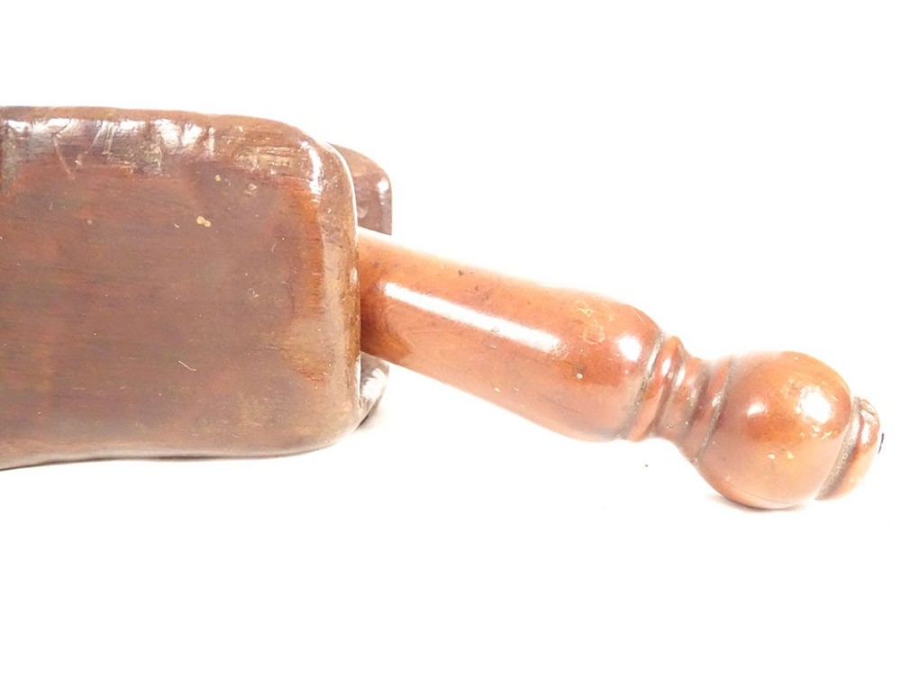 Wooden chocolate cutter (for making chocolate shavings*), lever knife profiling a stylized character, turned wooden handle, work of Popular Art from the 18th century.