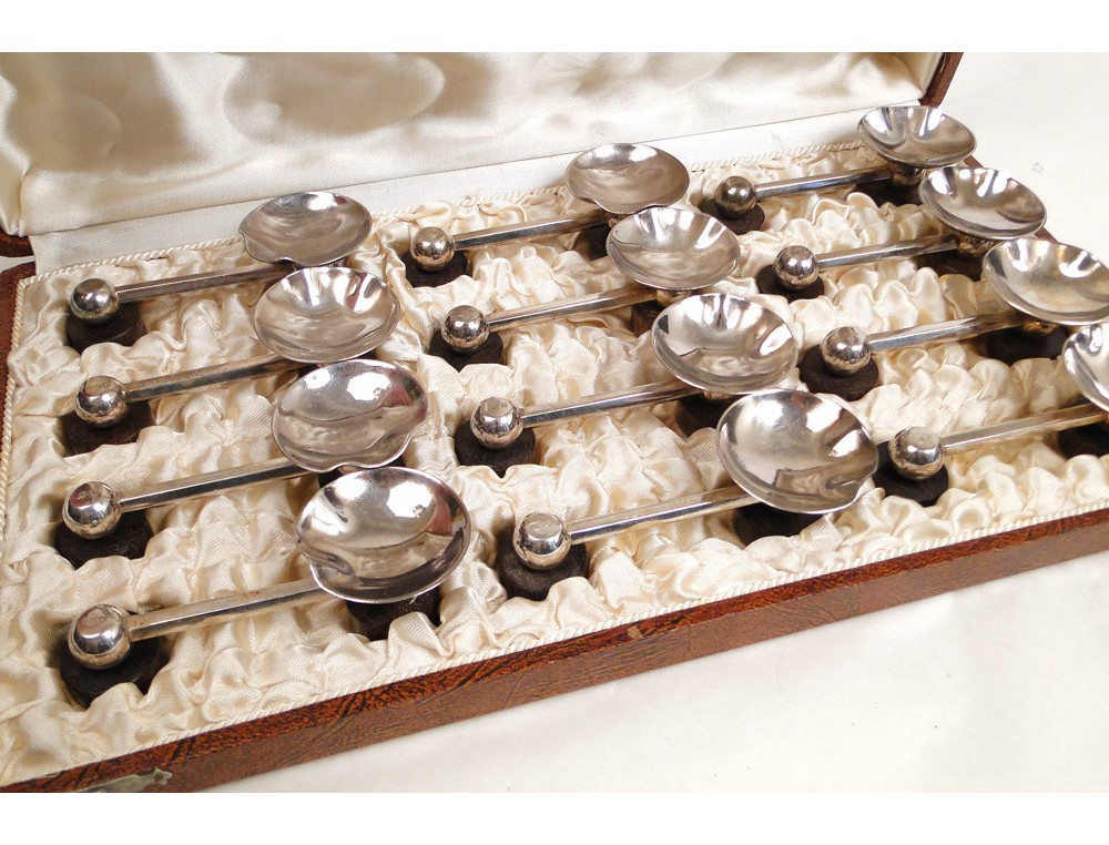 Series of 12 knife in silver and wood (rosewood or macassar Rio), stamped (see photos), in their original box, vintage 1930, the twentieth century.