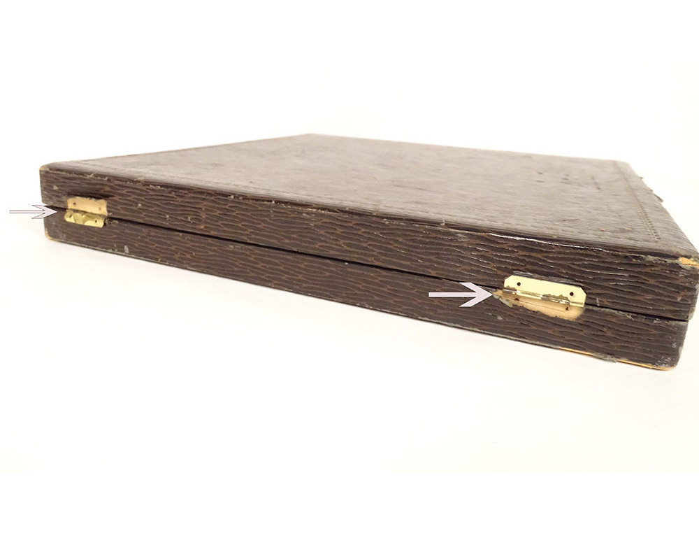 Please note: the hinges of the box are damaged, some minor dirt and wear from time, see photos.