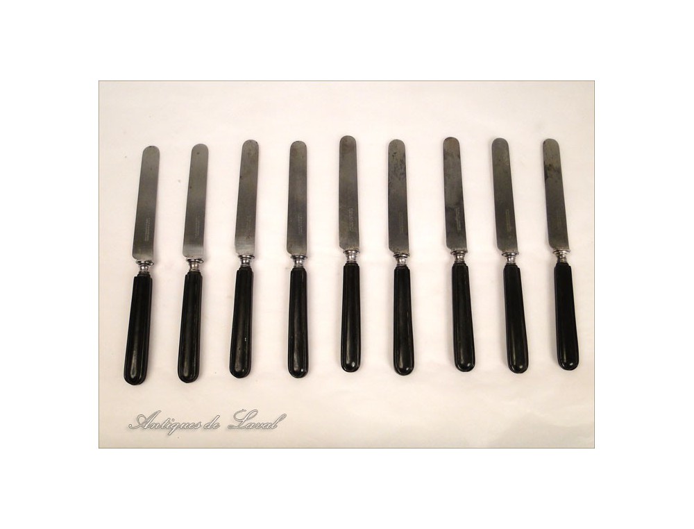 Series of nine knives, horn handle, steel blade signed "F.Gallier in Paris, 2 rue de la Feuillade," of XIXth century.