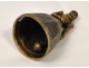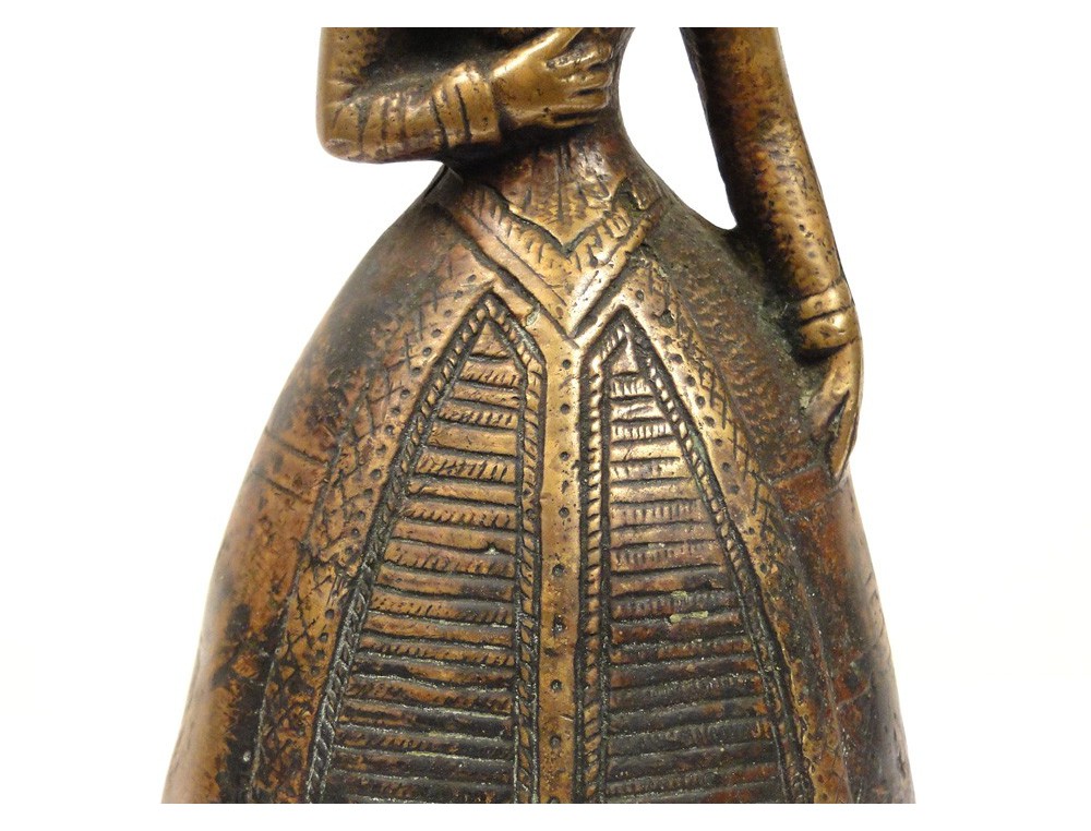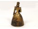 Very nice table bell finely carved gilt bronze, depicting a woman in medieval dress apparate certainly velvet and embroidery, XIXth century.