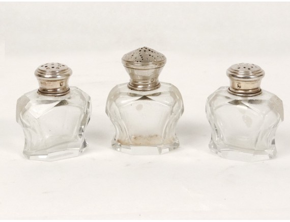 Very nice pair of salt and pepper shakers cut crystal certainly Baccarat and sterling silver stamped Minerva (1 title) and punch Goldsmith AR, Napoleon III nineteenth century.