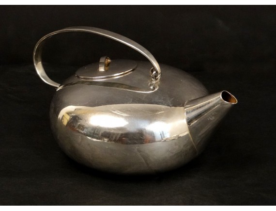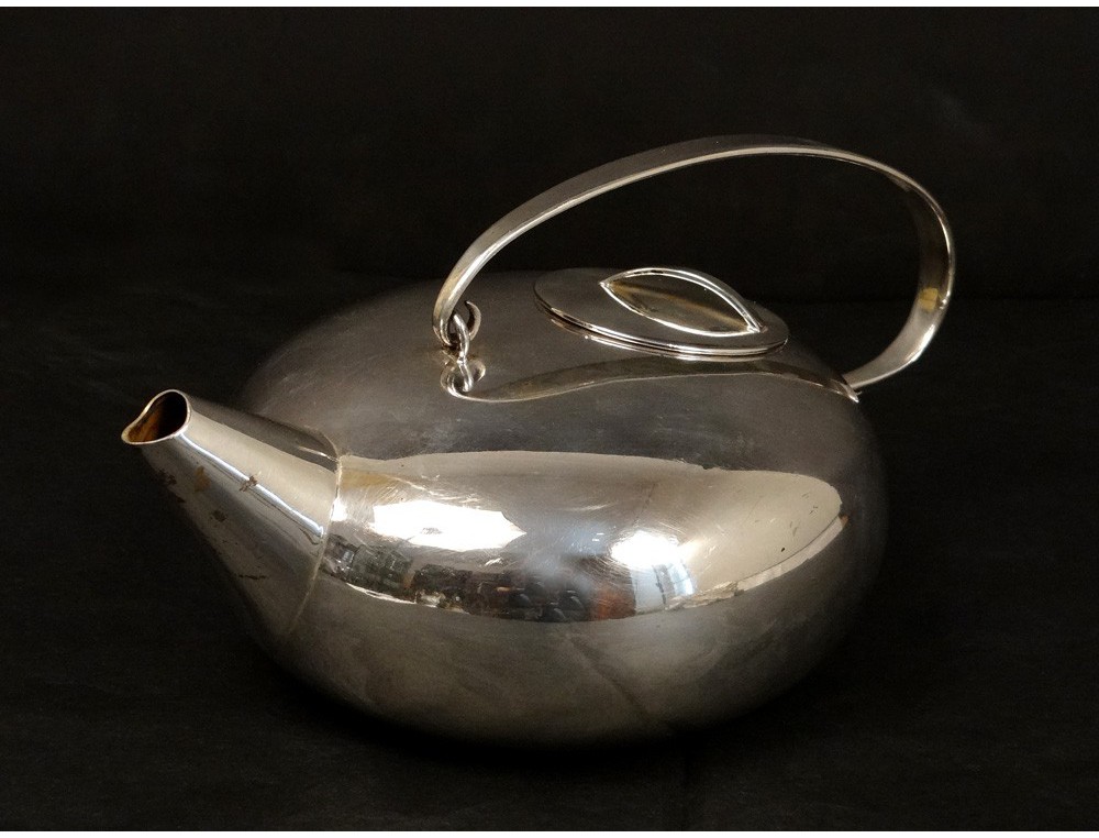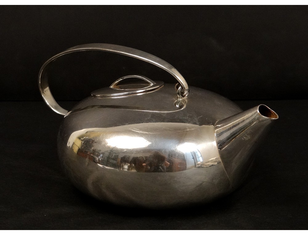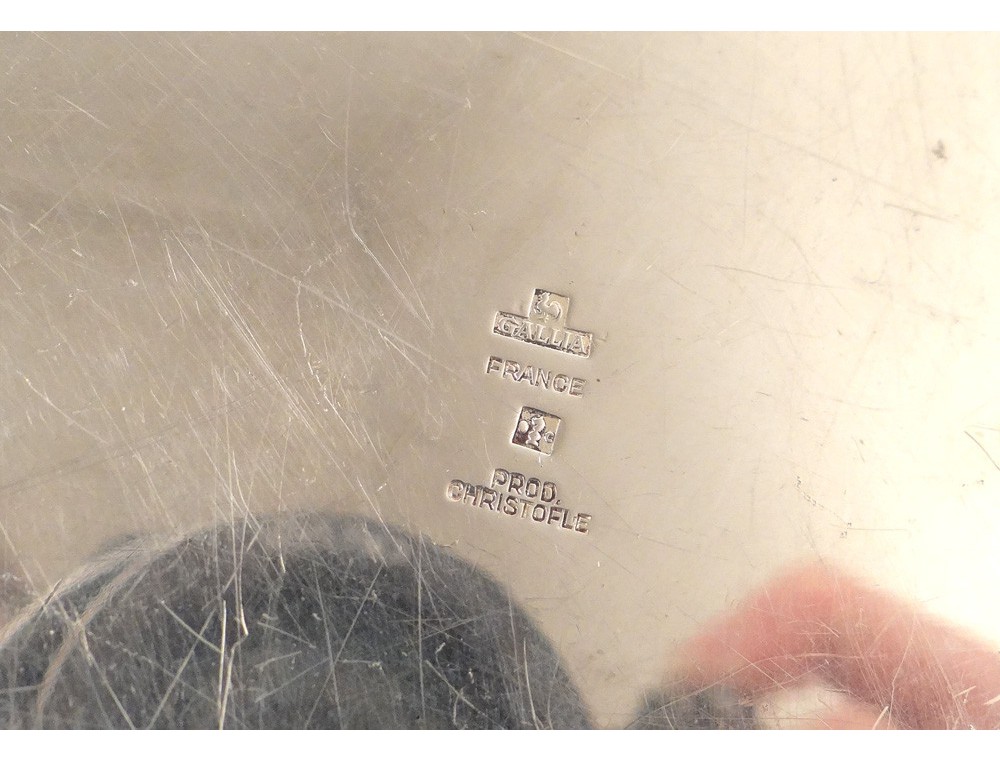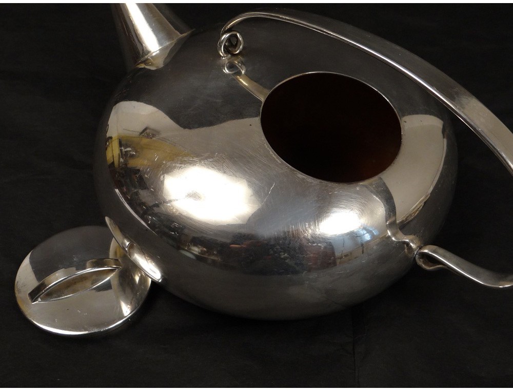 Great teapot silver metal, shpérique body flat and conical spout, signed and stamped from Christofle and Gallia House, period twentieth century.