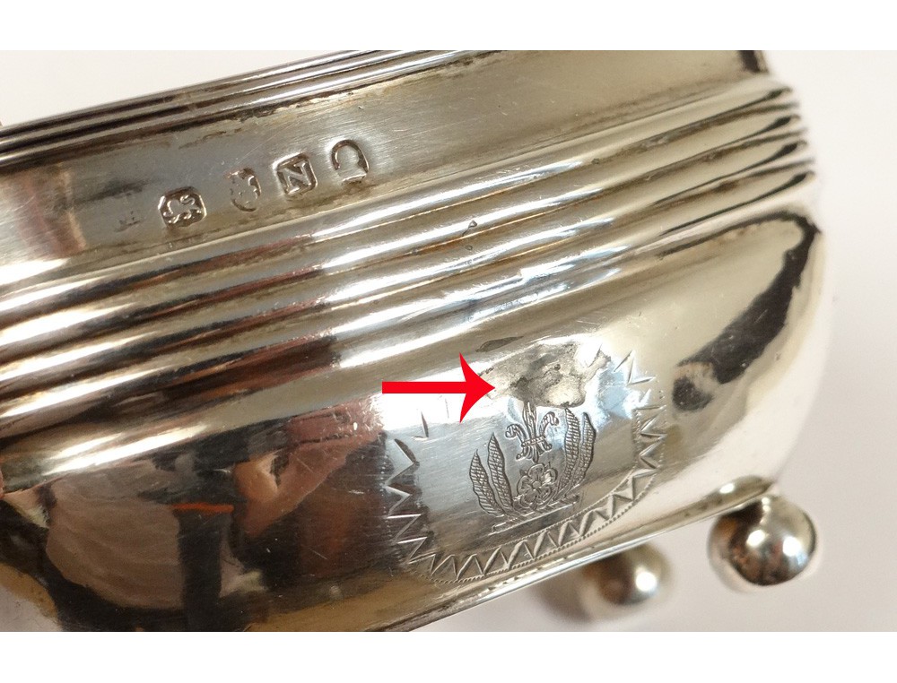 Very nice pair of English sterling silver salt punched a lion, decorated with shield decorated with a lily flower and feathers on the front of XIXth century.