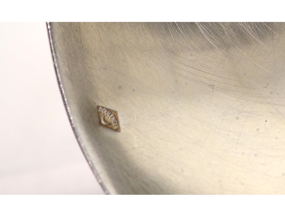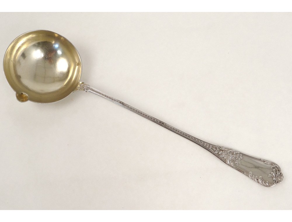 Very nice ladle milk or cream soup in silver chiselled decorative rock flowers and foliage on the neck, punched Minerva (1 title) and punch goldsmith Boulenger * cuilleron Vermeil, Napoleon III nineteenth century.